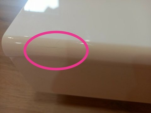 Klubska mizica je popolnoma nova, na zgornji plošči pa ima razpoke, ki so nastale zaradi transporta oz. neprimernega rokovanja. Slike v galeriji.