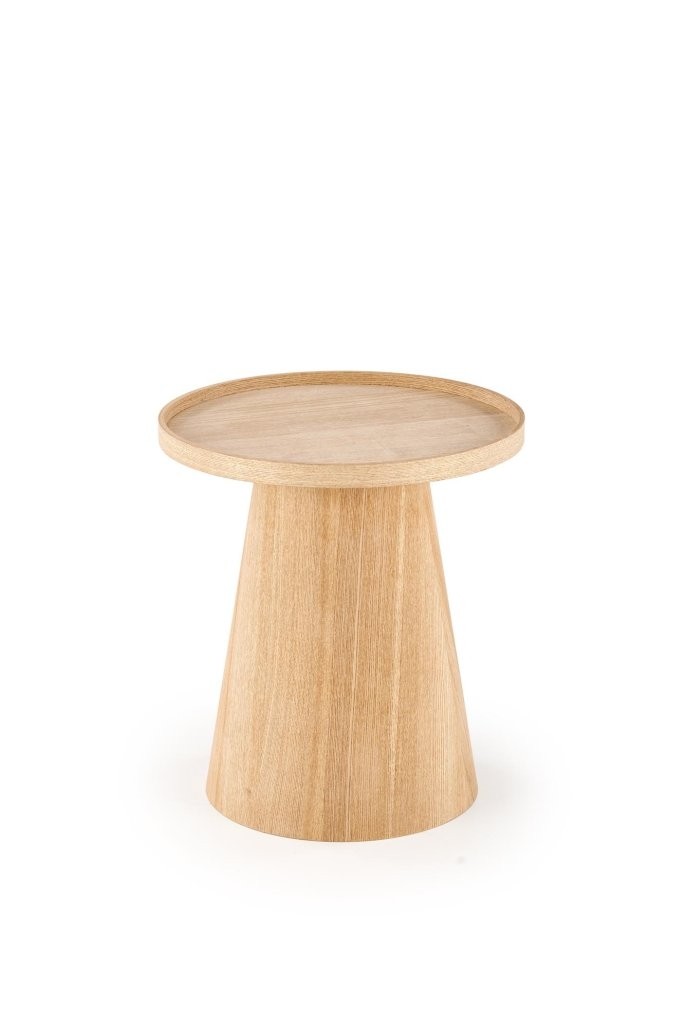 Klubska mizica Verlon s prefinjenim MDF ogrodjem in naravnim furnirjem, ki doda toplino in eleganco vsakemu prostoru. Okrogla oblika in minimalističen skandinavski slog jo naredita idealno za sodobne interierje.
