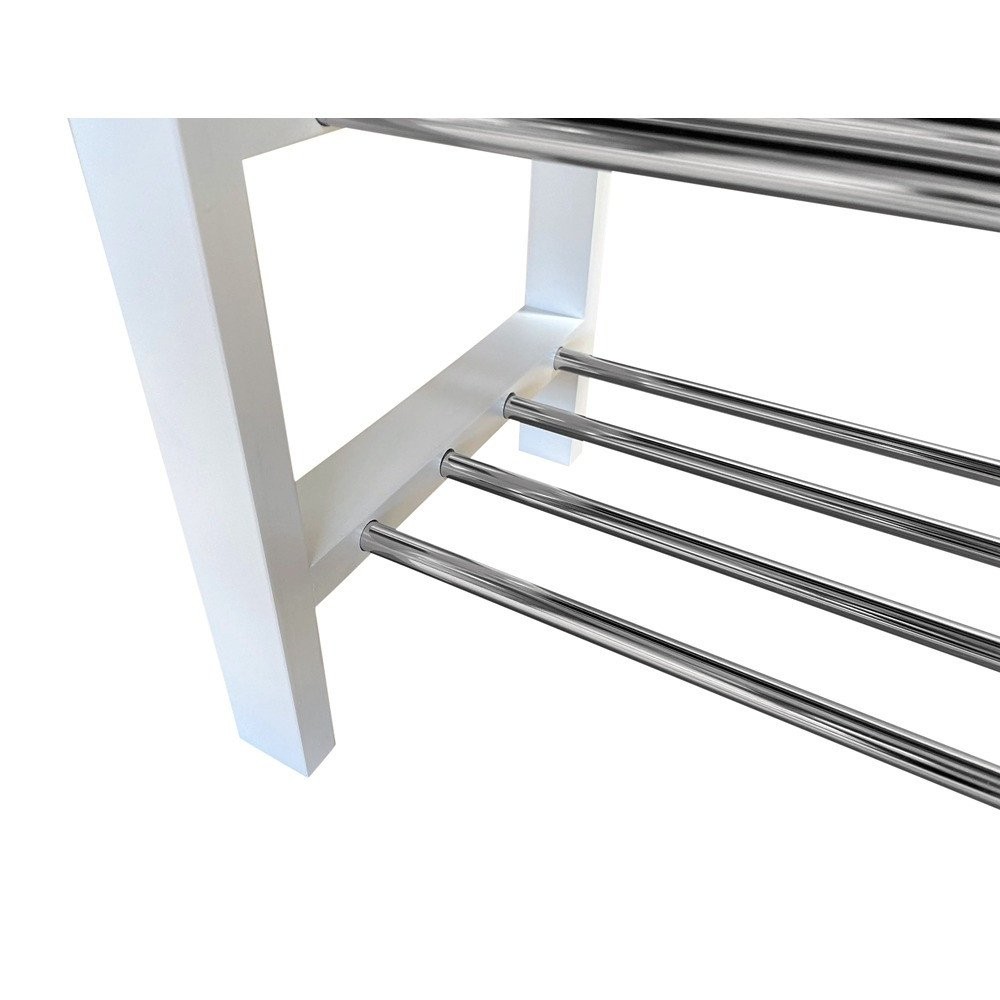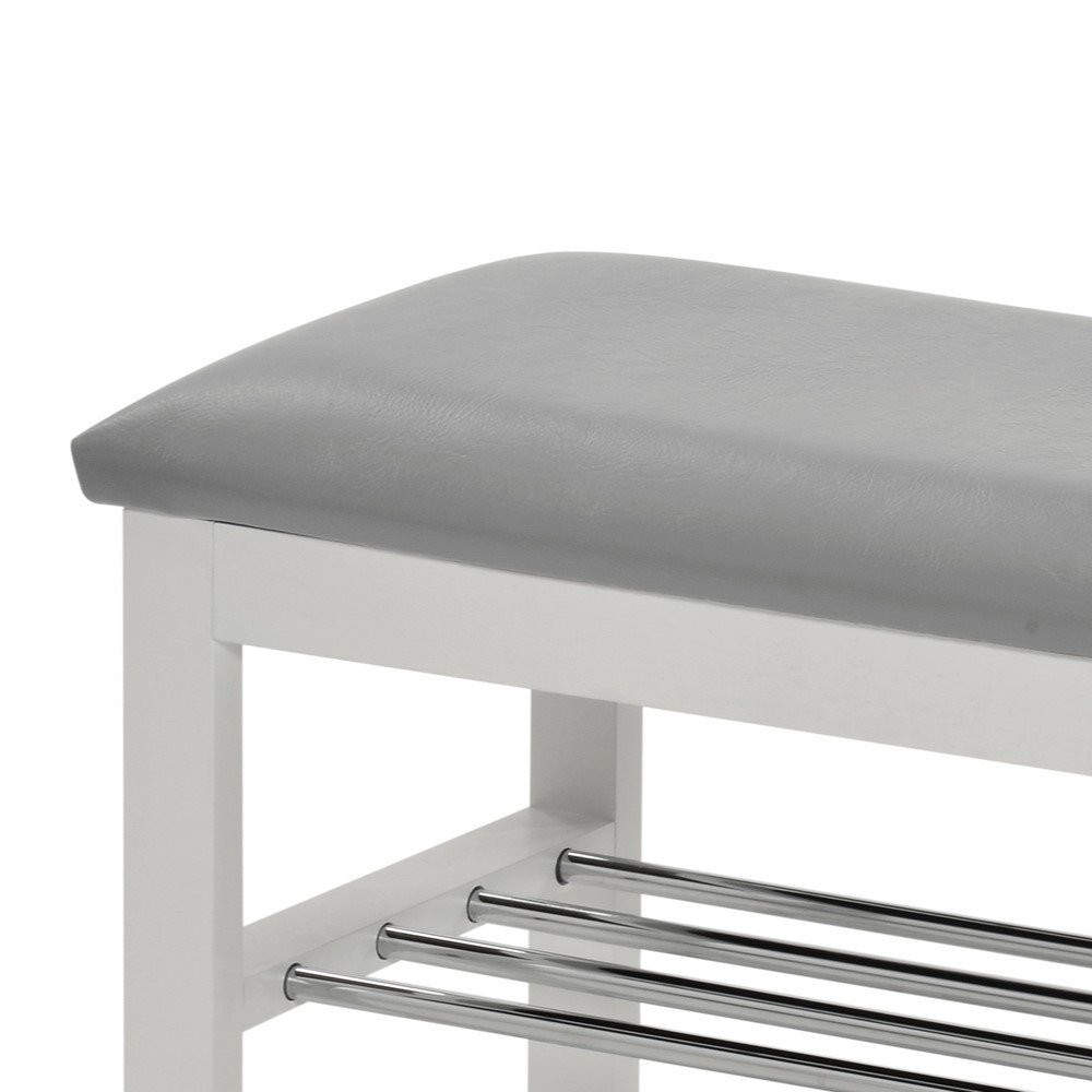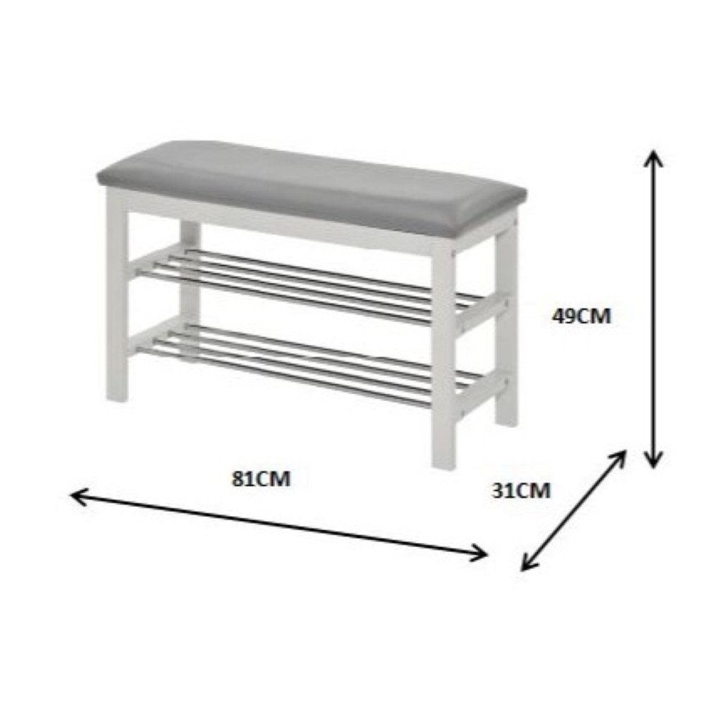 - Praktična klop z dvema poličkama za čevlje, na voljo v povsem črni barvi ali v kombinaciji bele in sive barve s kromiranimi prečkami