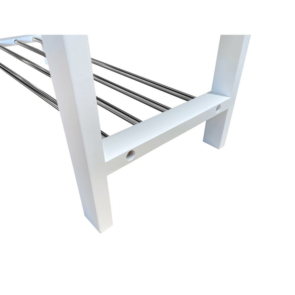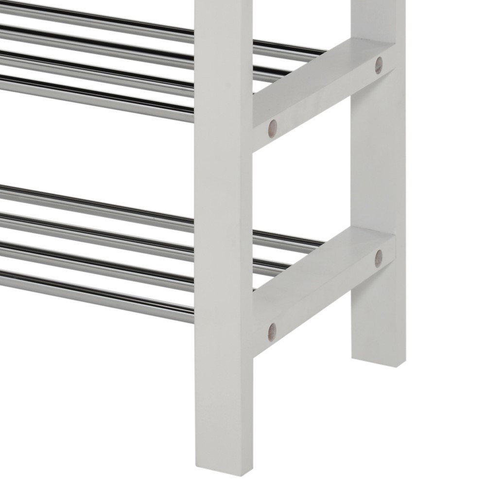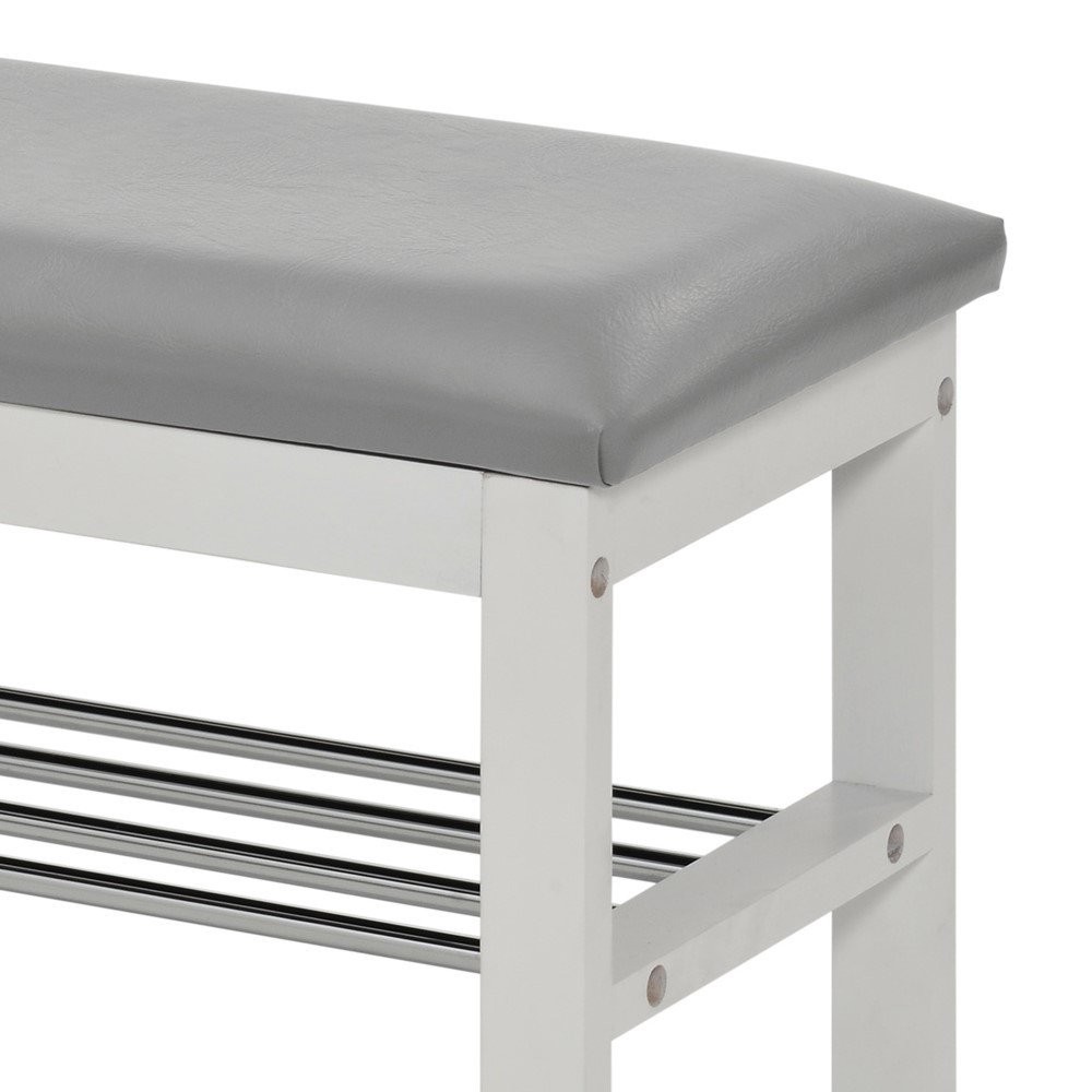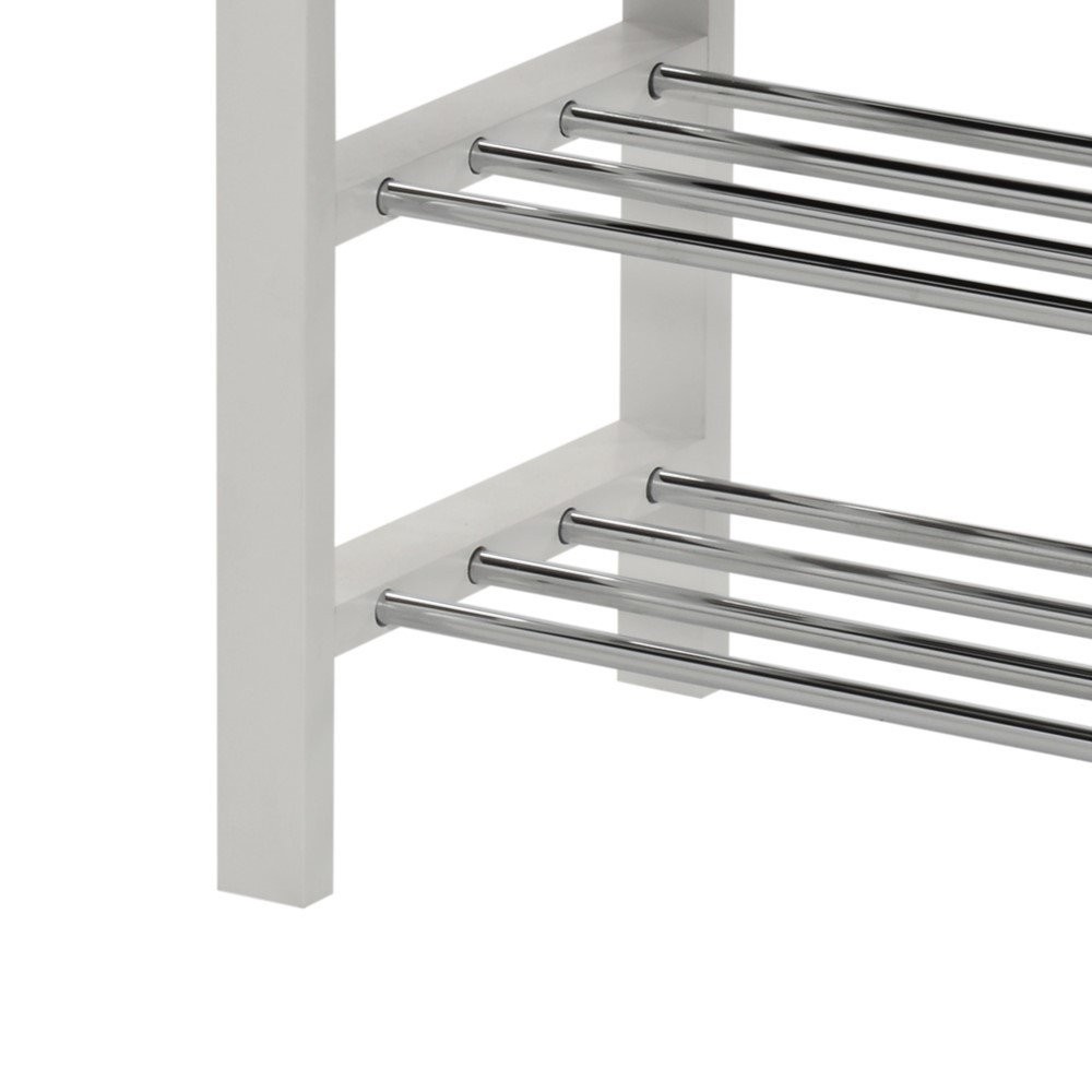 - Praktična klop z dvema poličkama za čevlje, na voljo v povsem črni barvi ali v kombinaciji bele in sive barve s kromiranimi prečkami
