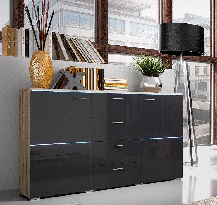 Komoda Anton (hrast, antracit)-z osvetlitvijo