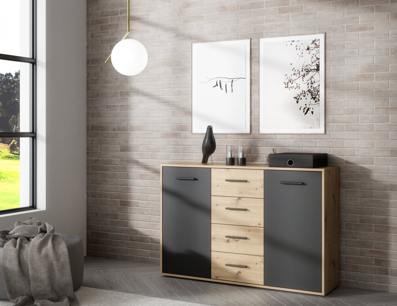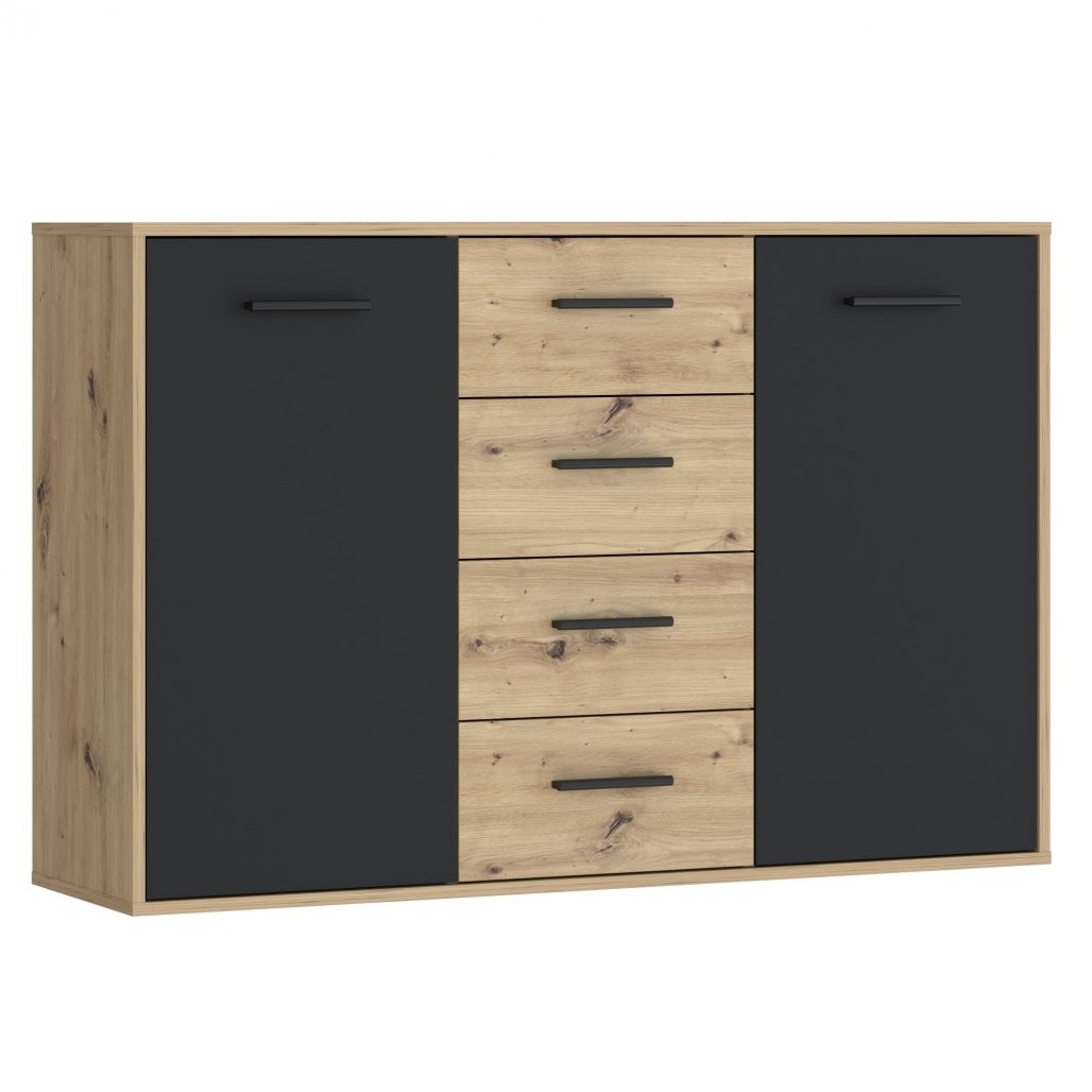 Komoda ANTUZA NTU231-M712 (hrast/siva) je elegantna in praktična izbira za vsak dom. S kombinacijo hrasta in sive barve ter kakovostnim iveralom popestri vaš prostor in ponuja dovolj prostora za shranjevanje.