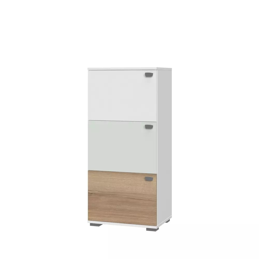 S sodobno komodo B3 boste združili eleganco in uporabnost. Opremljena je s tremi vrati, ki so primerna za shranjevanje oblačil, spodnje perila, nakita in ostalih stvari, ki sodijo v spalnico. Komoda pa lahko postavite tudi v dnevno sobo ali predsobo in tudi tam organizirate vaš prostor. Na voljo je v več barvah, ki jih lahko kombinirate.