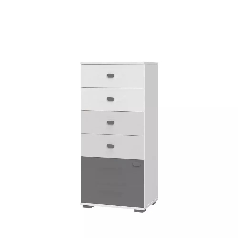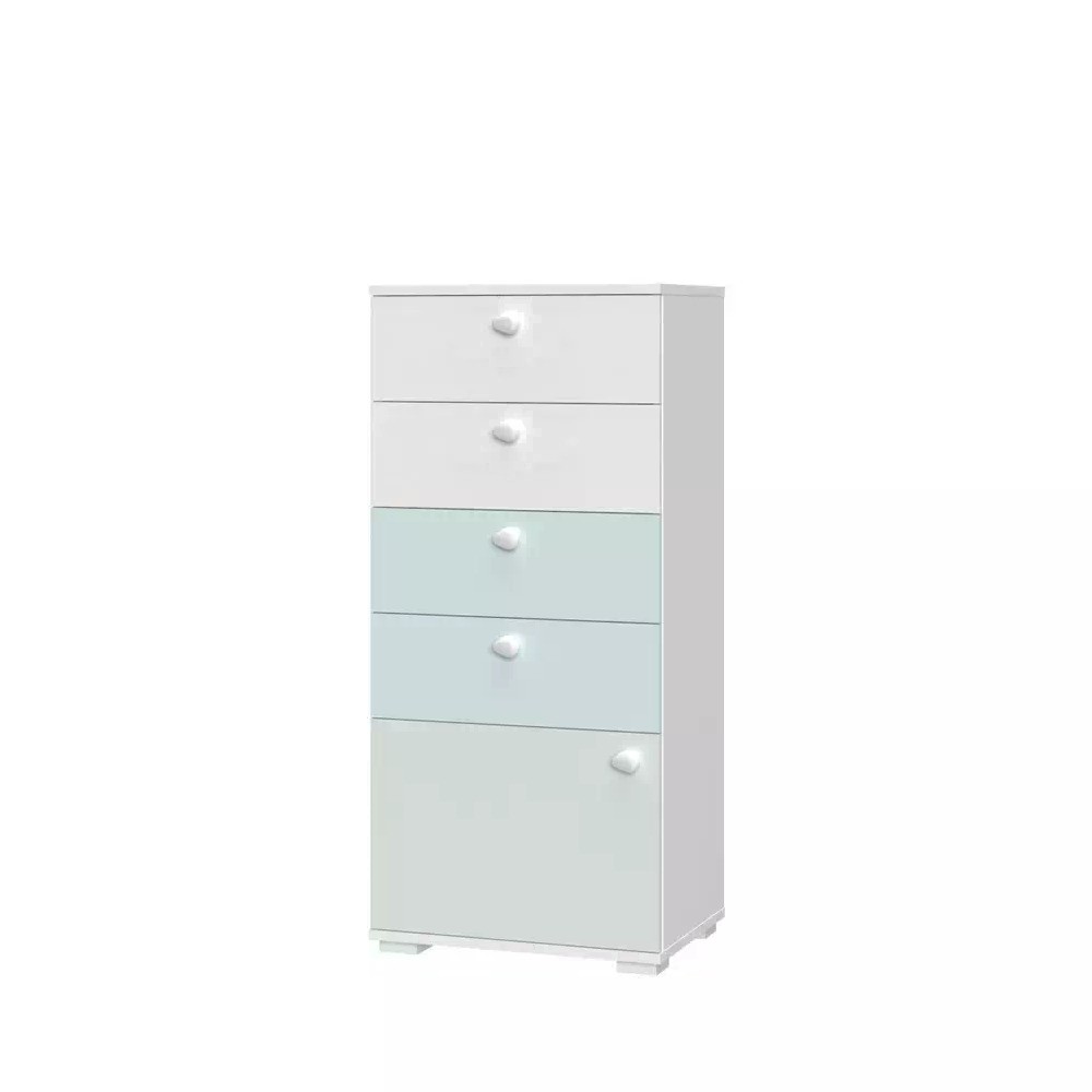 Komoda B5 ne le izžareva čar in eleganco, ampak tudi poživi vaš prostor. Njeni štirje predali in vratca omogočajo enostavno shranjevanje in dostop do vseh vaših dragocenih predmetov. S sodobnim dizajnom in kombinacijo različnih barv se popolnoma ujema z vsako notranjostjo. Komoda je vsestranska saj jo lahko uporabite v dnevni sobi, spalnici ali predsobi.