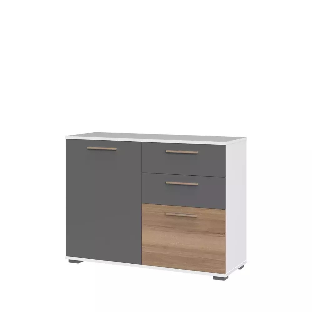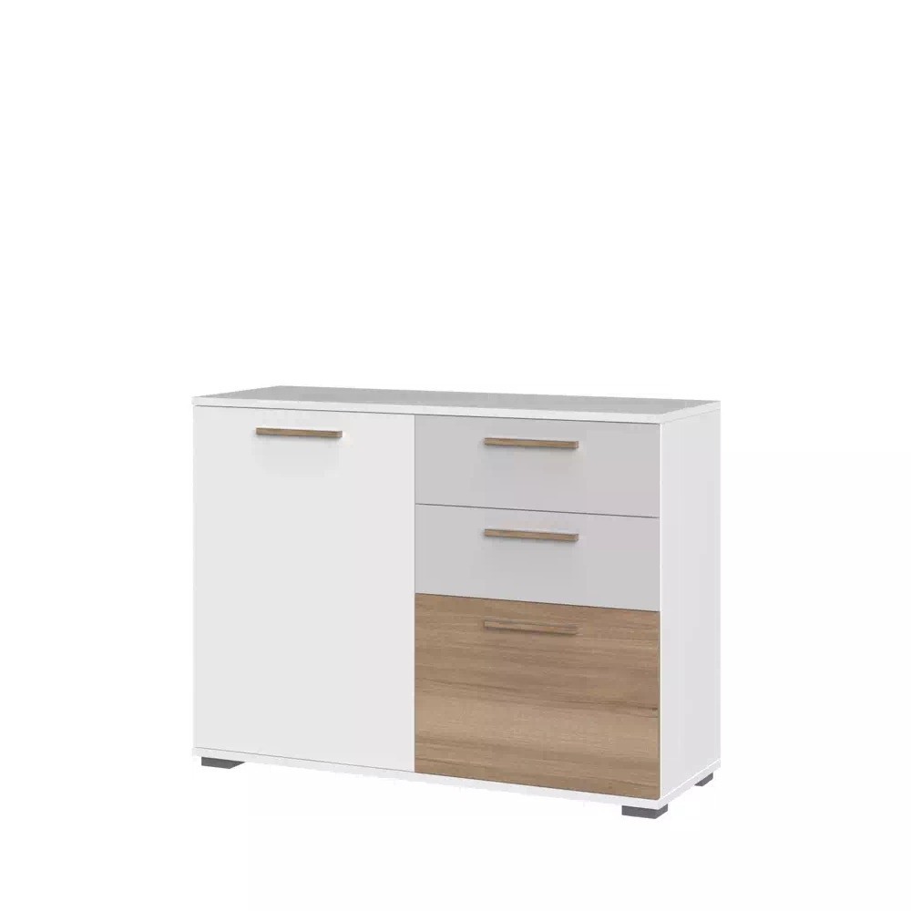Komoda ARC C4 je sodobna komoda, ki ima dva predala in dvoja vratca. V predala in za vratca pa lahko pospravite zbirke knjig, DVD-je, družabne igre in revije - vsak predmet dobi svoje mesto in tako poskrbi, da vaše dragocenosti ne bodo več ležale raztresene po mizi ali pod televizorjem. Komoda pa ni primerna samo za dnevno sobo, vendar jo lahko uporabite tudi v spalnici ali predsobi.