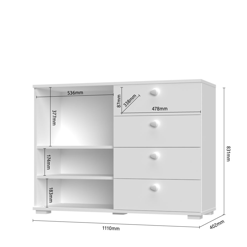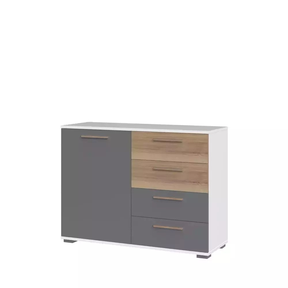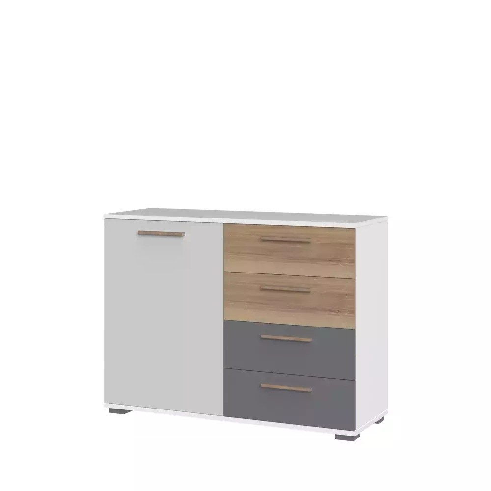 Komoda ARC C7 s štirimi predali ponuja obilico shranjevalnega prostora. Od nakita, očal, do parfumov in osebnih pripomočkov - vsaka stvar bo imela svoje mesto. Organizirajte svoj prostor z eleganco in stilom! Na voljo je v več barvah, ki popestrijo vaš prostor in tudi primerna je za več prostorov - spalnica, predsoba ali dnevna soba.