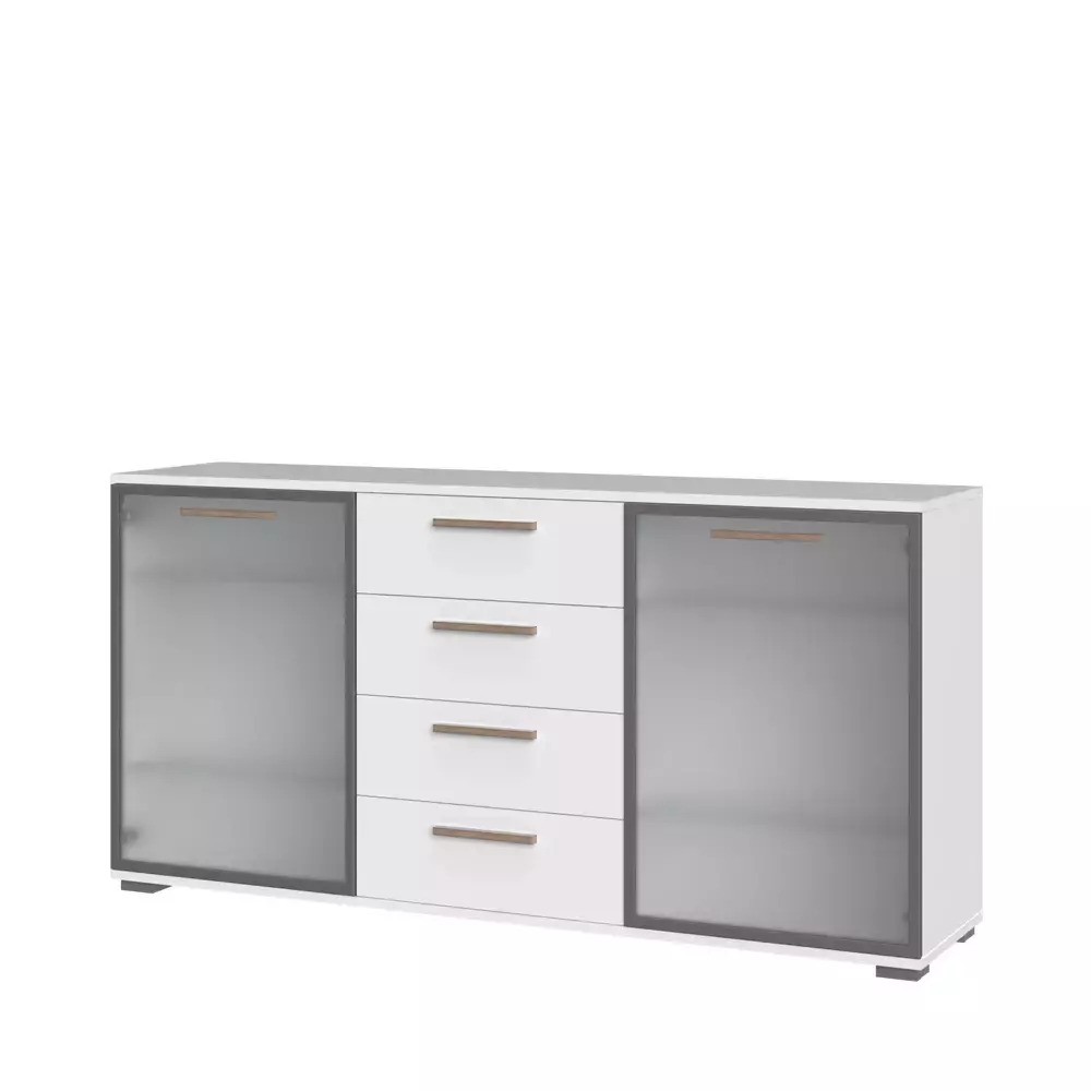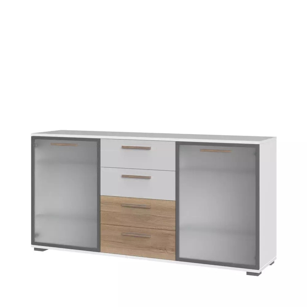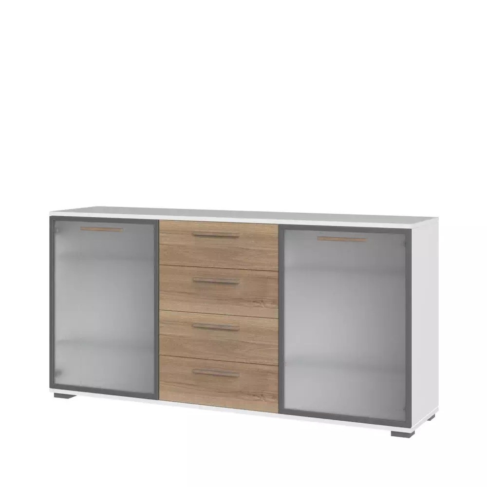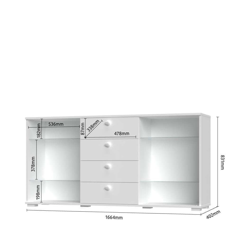Predstavljamo vam komodo, ki združuje eleganco in funkcionalnost! S štirimi predali in dvojimi steklenimi vrati je ta komoda popolna izbira za shranjevanje in razstavljanje vaših dragocenosti. Predali ponujajo obilo prostora za organizacijo, medtem ko steklena vrata omogočajo, da vaše najljubše predmete postavite na ogled.