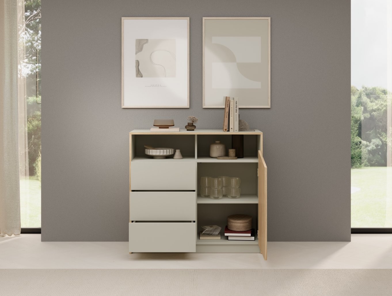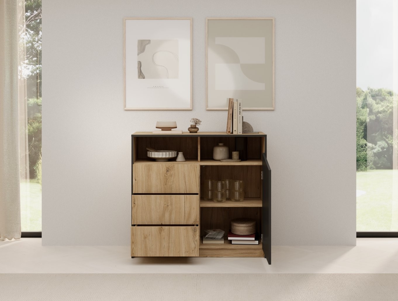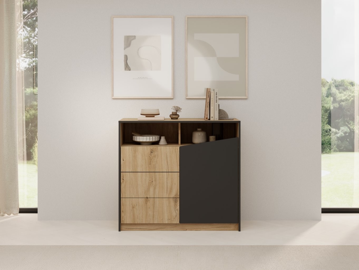 Komoda Atson je idealna za vse, ki želijo v svoj dom vnesti toplino lesa in sodoben dizajn, hkrati pa potrebujejo praktičen prostor za shranjevanje.