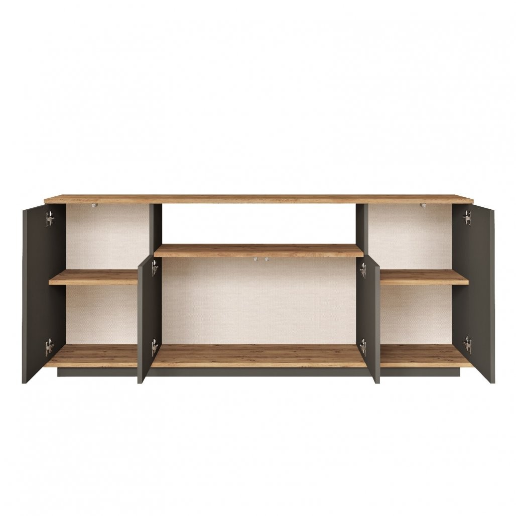 Preoblikujte svoj bivalni prostor z našo osupljivo konzolo, izdelano iz 100-odstotno melaminirane iverne plošče. Elegantna zasnova in sodobna barvna kombinacija atlantskega bora in antracitne barve bosta v trenutku povzdignili slog vsakega prostora.