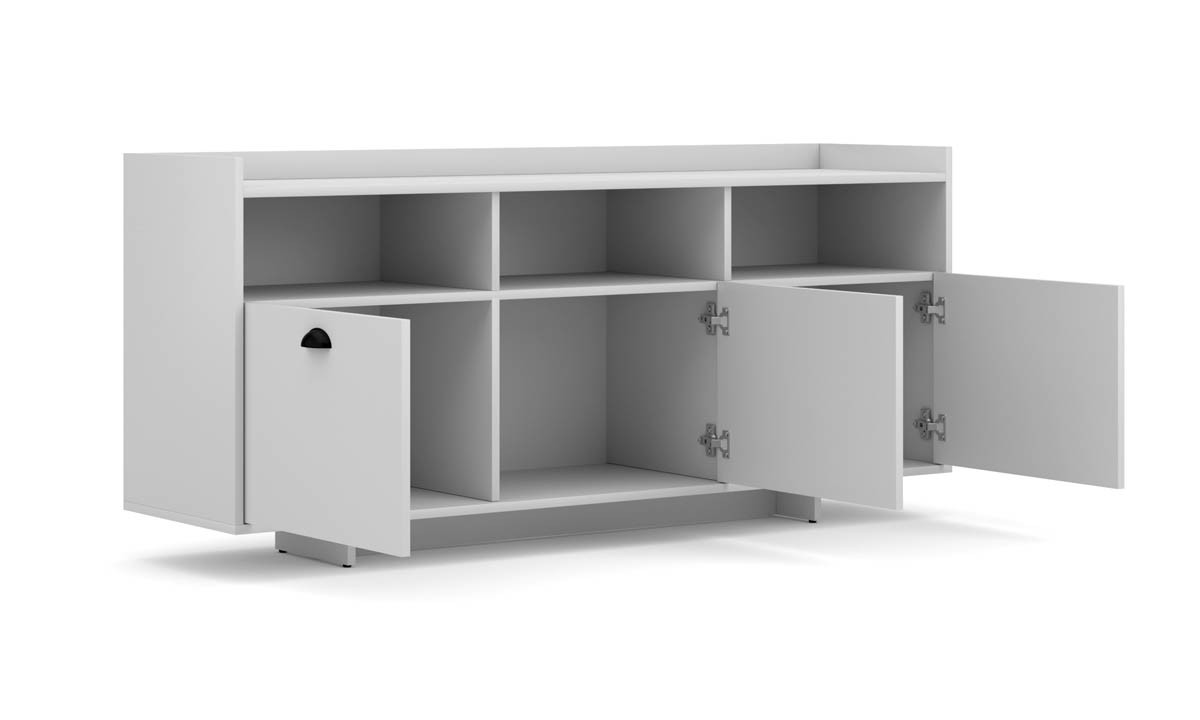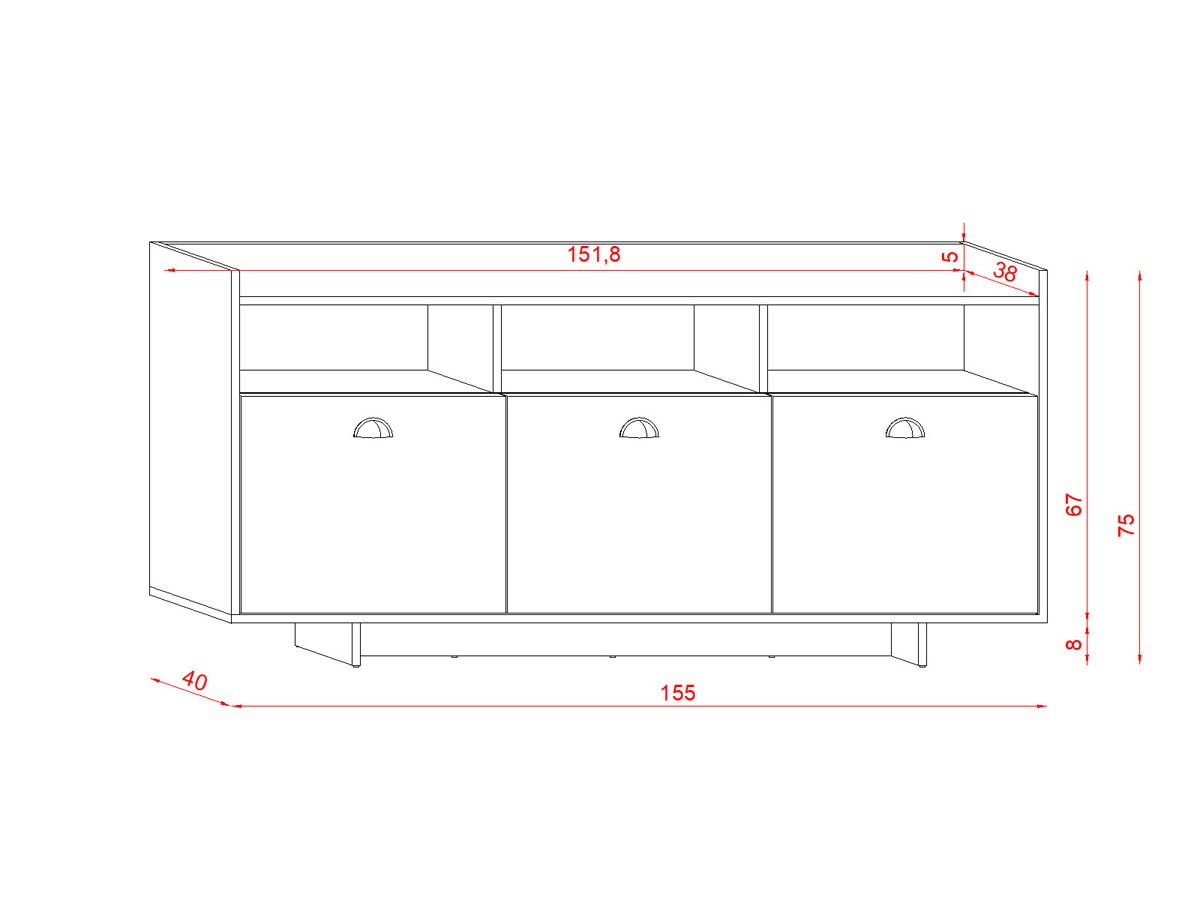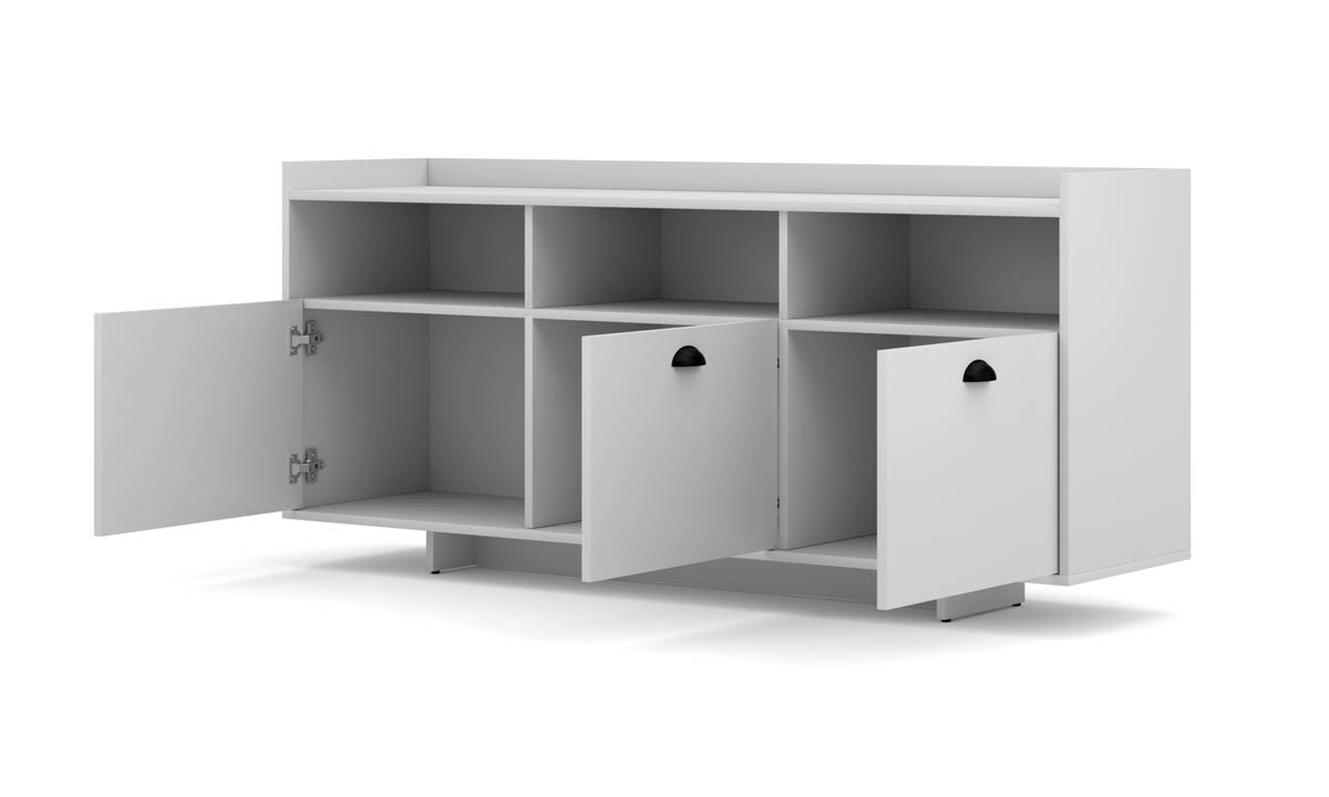 Komoda CUPARINO ni samo praktičen kos pohištva, ampak tudi eleganten dodatek za vašo dnevno sobo, spalnico ali pisarno. Vsebuje tri police in troje vrat, za katerimi se nahaja shranjevalni prostor za vaša oblačila. Komoda je primerna za tiste, ki iščejo urejenost in stil.