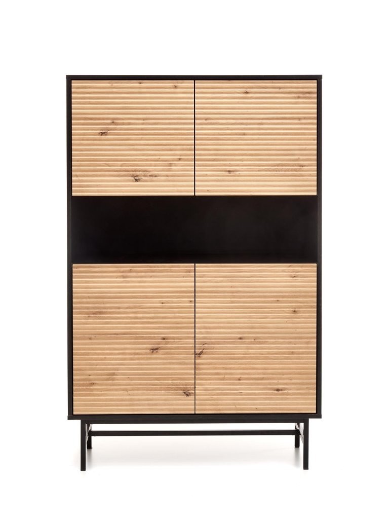 Komoda Delvik z visokimi in elegantnimi linijami ponuja veliko prostora za shranjevanje in je odličen dodatek za moderno dnevno sobo ali spalnico.