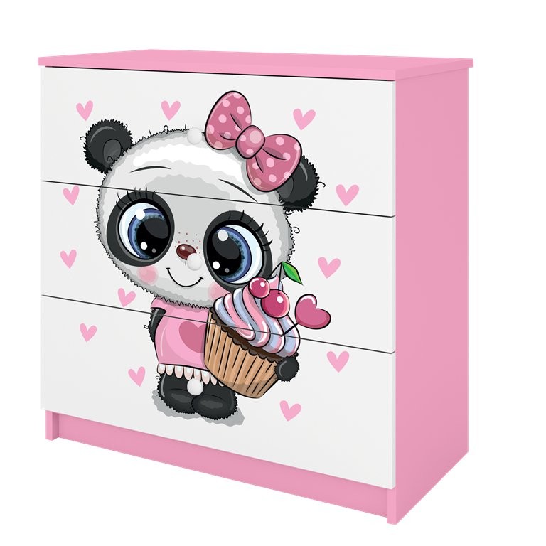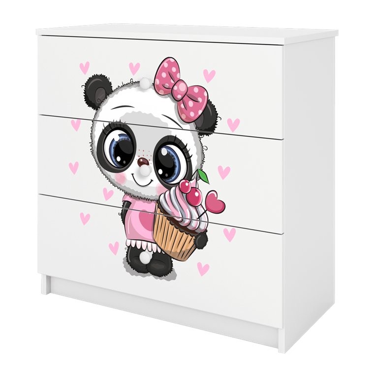 Komoda Dreamy panda je praktičen kos otroškega pohištva, ki omogoča urejeno shranjevanje in v otroško sobo vnese igriv motiv. Na voljo je v več barvah, kar omogoča lažje prilagajanje prostoru. Izdelana je iz oplemenitene iverne plošče, ki zagotavlja stabilno in zanesljivo uporabo.
