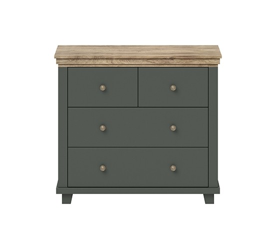 Komoda EVORA je na voljo v zeleni barvi s pridihom hrasta. Zaradi svoje temno zelene barve se odlično poda v vsako spalnico. Vsebuje veliko shranjevalne površine kamor lahko shranjujete vaše spodnje perilo, nogavice in ostala oblačila.