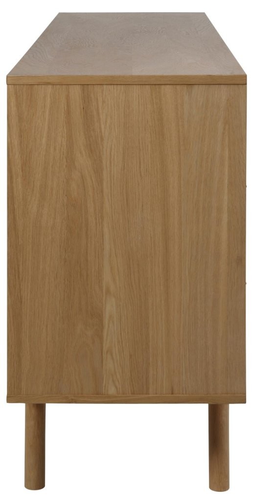 Komoda GOLIAT je klasičnega izgleda, namenjena shranjevanju in razstavljanju predmetov v vašem domu. Ta elegantna komoda je izdelana iz kakovostnega mediapana v barvi hrasta, ki zagotavlja dolgotrajno vzdržljivost. Ta komoda vsebuje štiri predale in dvoje vrat, kar ponuja veliko prostora za shranjevanje. Posebnost te komode so drsna vrata, kar omogoča lažji dostop do predalov.
