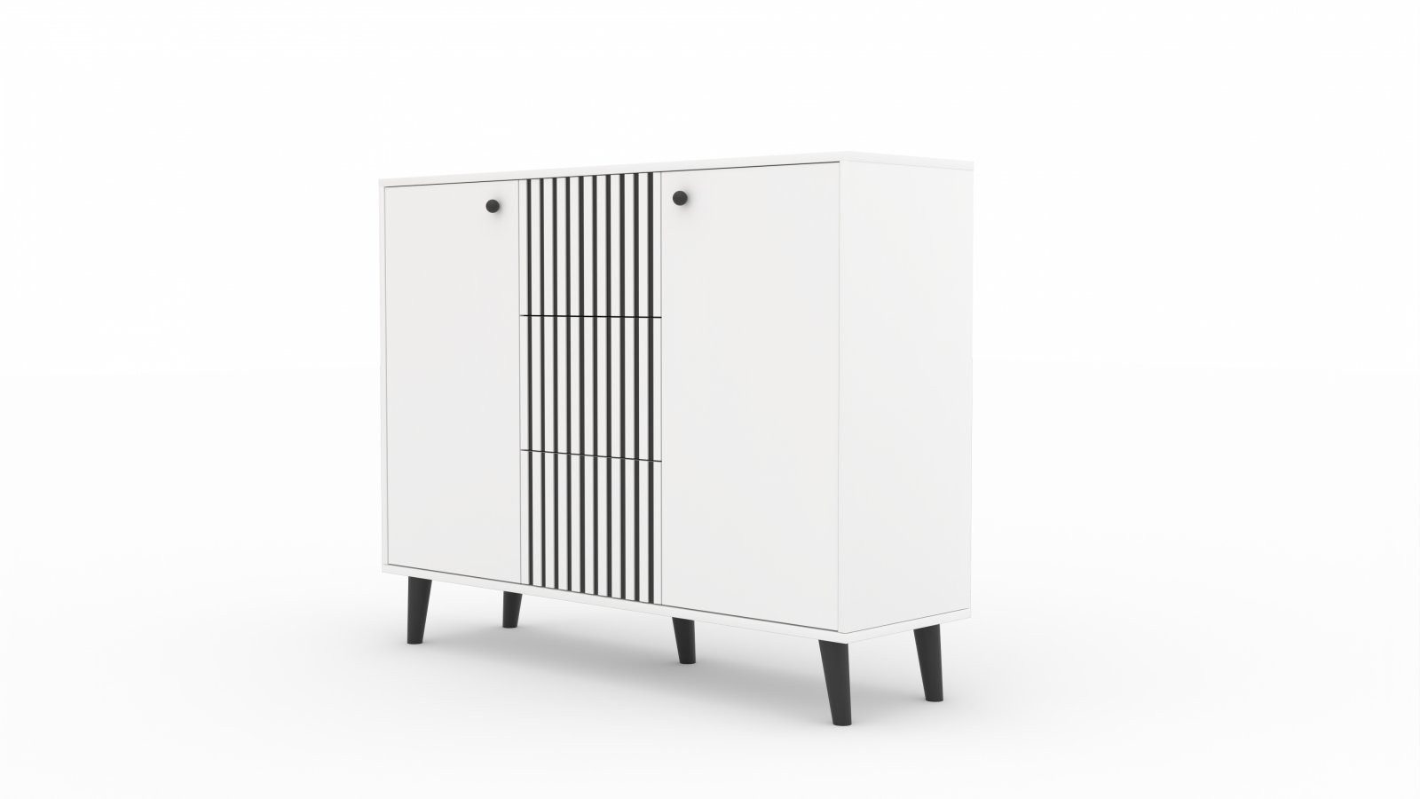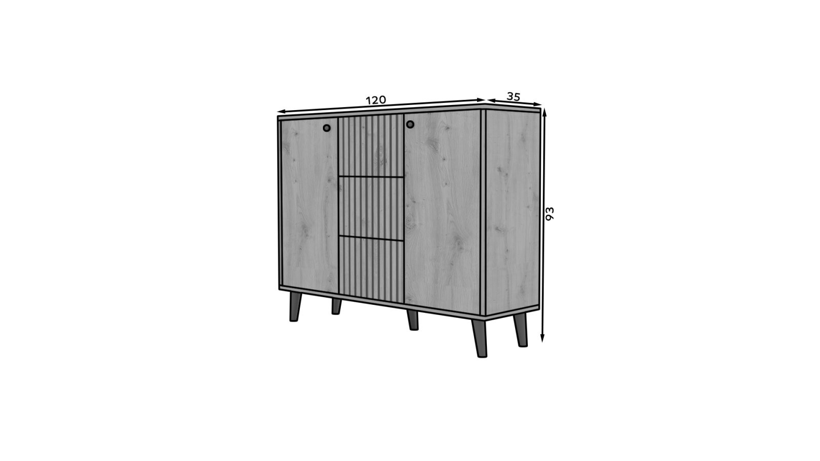 Komoda IKA je popolna izbira za vse, ki iščete funkcionalen in estetsko dovršen kos pohištva. S svojo minimalistično zasnovo in lahkotno obliko se odlično poda v dnevno sobo, spalnico ali hodnik.