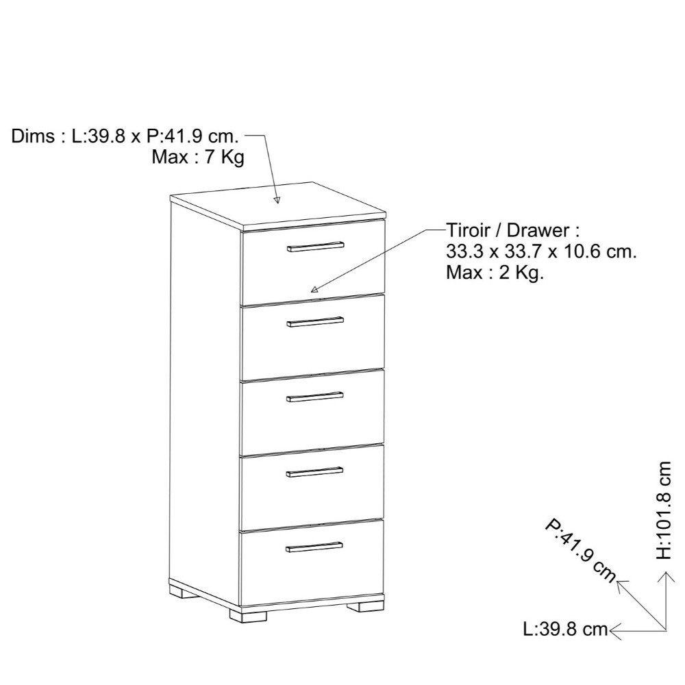 Komoda IZZY 385291 (bela) je moderna in funkcionalna izbira za vašo dnevno sobo. S petimi prostornimi predali in elegantno belo barvo se odlično prilega v vsak prostor.