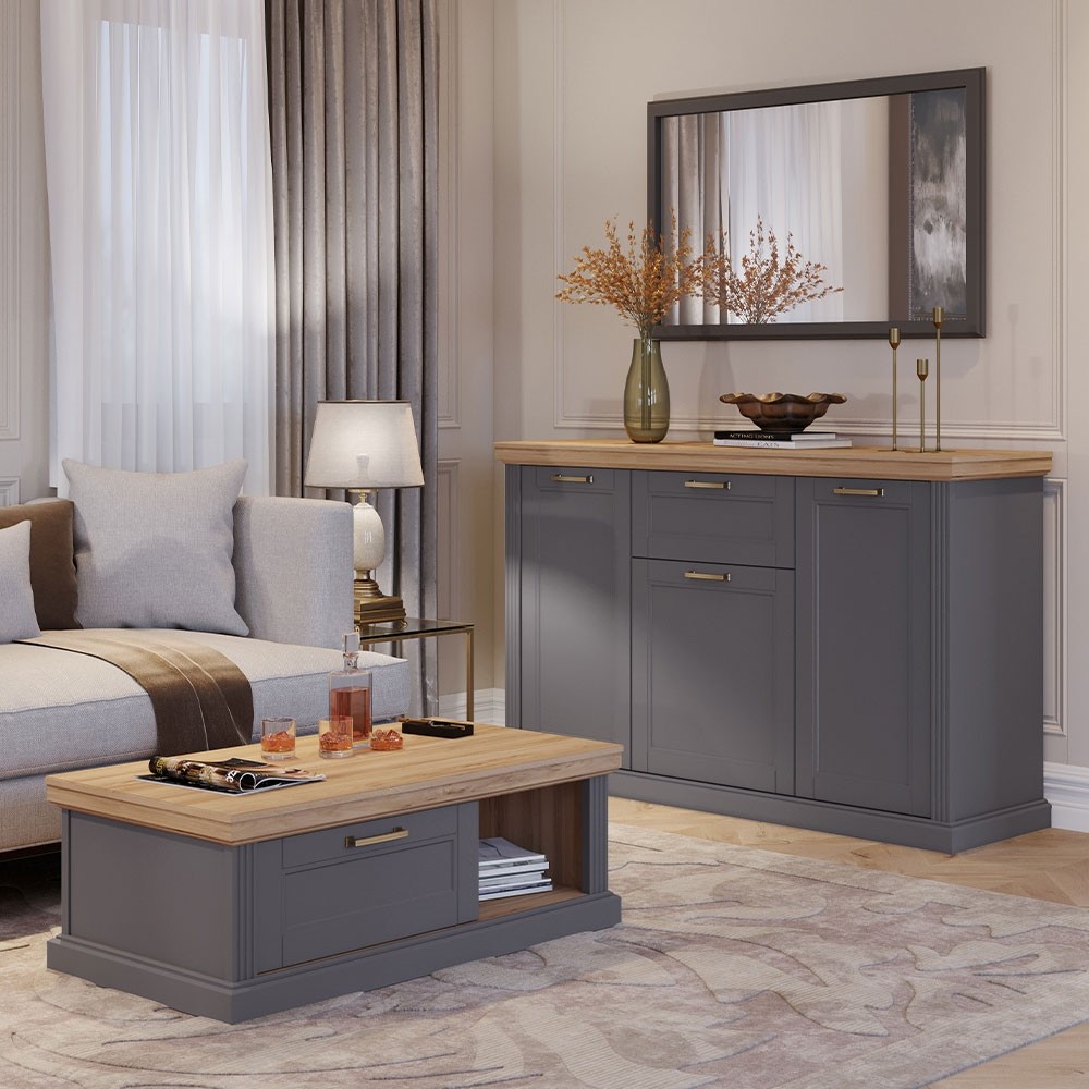 Potrebujete dodatni prostor za shranjevanje v dnevni sobi, spalnici ali jedilnici? KOMODA KALLA TARA je odlična izbira, saj se lepo poda v vsak dom in vam nudi veliko prostora za shranjevanje. Ima troja vratca za katerimi so police, ter en manjši predal ki je še posebej priročen za shranjevanje manjših predmetov.