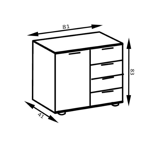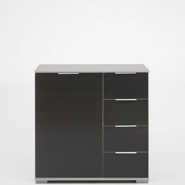 Komoda LOLITA 2 je odlična izbira za vse, ki potrebujete funkcionalno komodo, ki ne zavzame veliko prostora a vseeno nudi dovolj prostora za shranjevanje različnih predmetov. Elegantna kombinacija belega okvirnja in temno sivih front bo modernizirala vsak prostor ter ga naredila bolj glamuroznega. Ima 4 predale s kovinskimi vodili, ter en velik prostor za shranjevanje ki vsebuje eno fiksno notranjo polico. Za kakovost komode poskrbi nemška izdelava. Oglejte si še ostale elemente iz kolekcije Lolita za stilsko dovršen dom!