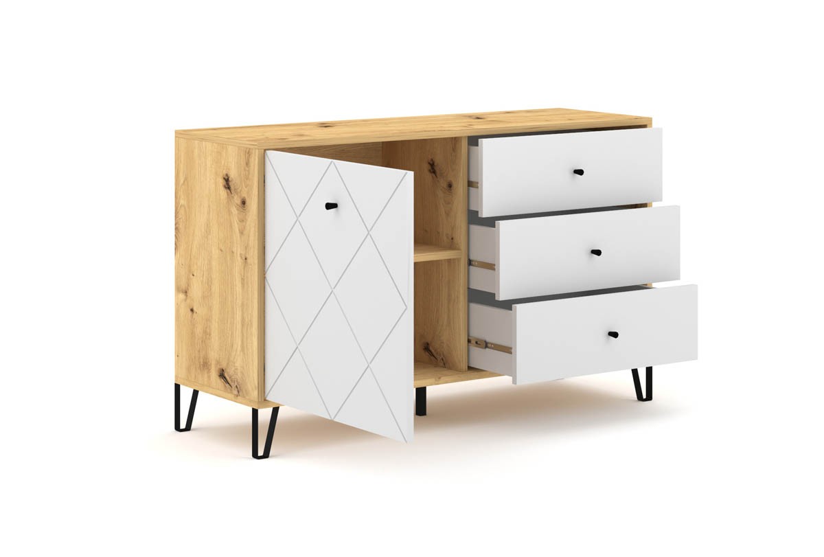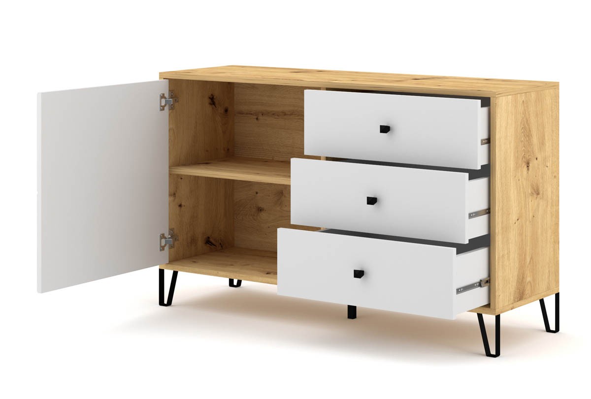Če iščete preprost, a stilski kos pohištva, je minimalistična komoda MURI popolna izbira za vas. Njeni prostorni predali ponujajo obilo prostora za shranjevanje, medtem ko njena eleganca dopolnjuje sodobne prostore.