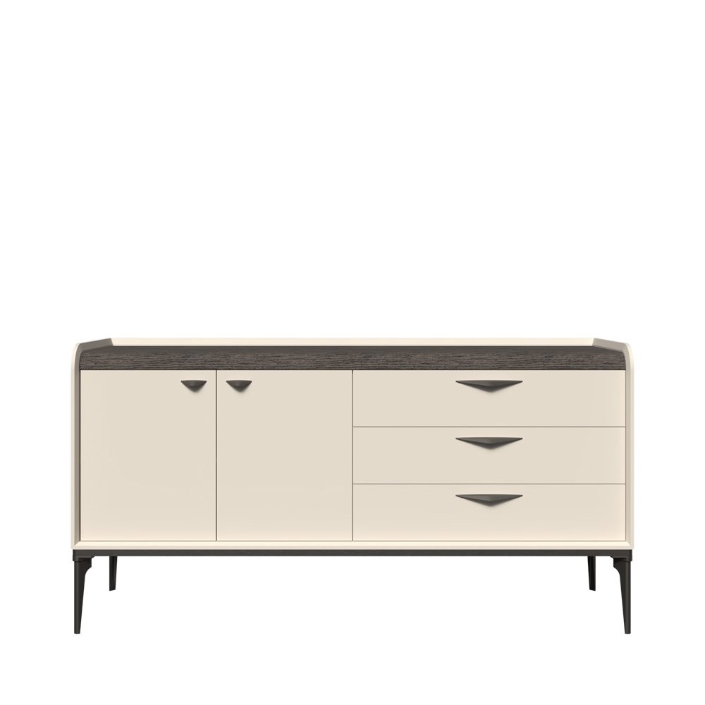 Komoda Radda Soffy K167-2K3F/SF je popolna izbira za tiste, ki iščejo eleganten in funkcionalen kos pohištva za svoj dom. S svojim modernim dizajnom in vrhunskimi materiali združuje estetiko in praktičnost. Njena prostorna notranjost omogoča optimalno organizacijo, medtem ko kakovostni materiali zagotavljajo dolgo življenjsko dobo. Lakirani fronti v dekorju Pepper White mat lak v kombinaciji z dekorjem Hrast Melinga siva ustvarjajo prefinjen videz, ki se prilega različnim stilom notranje opreme.