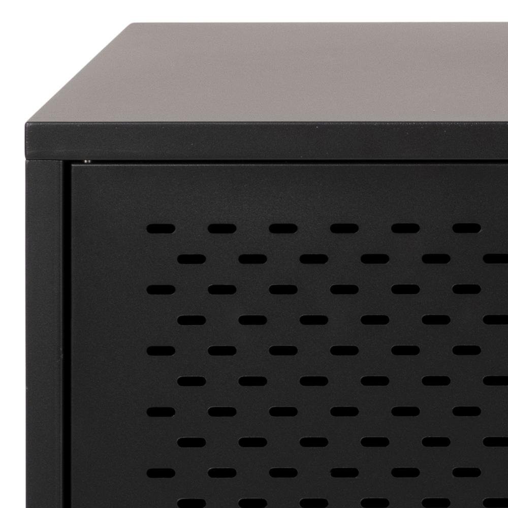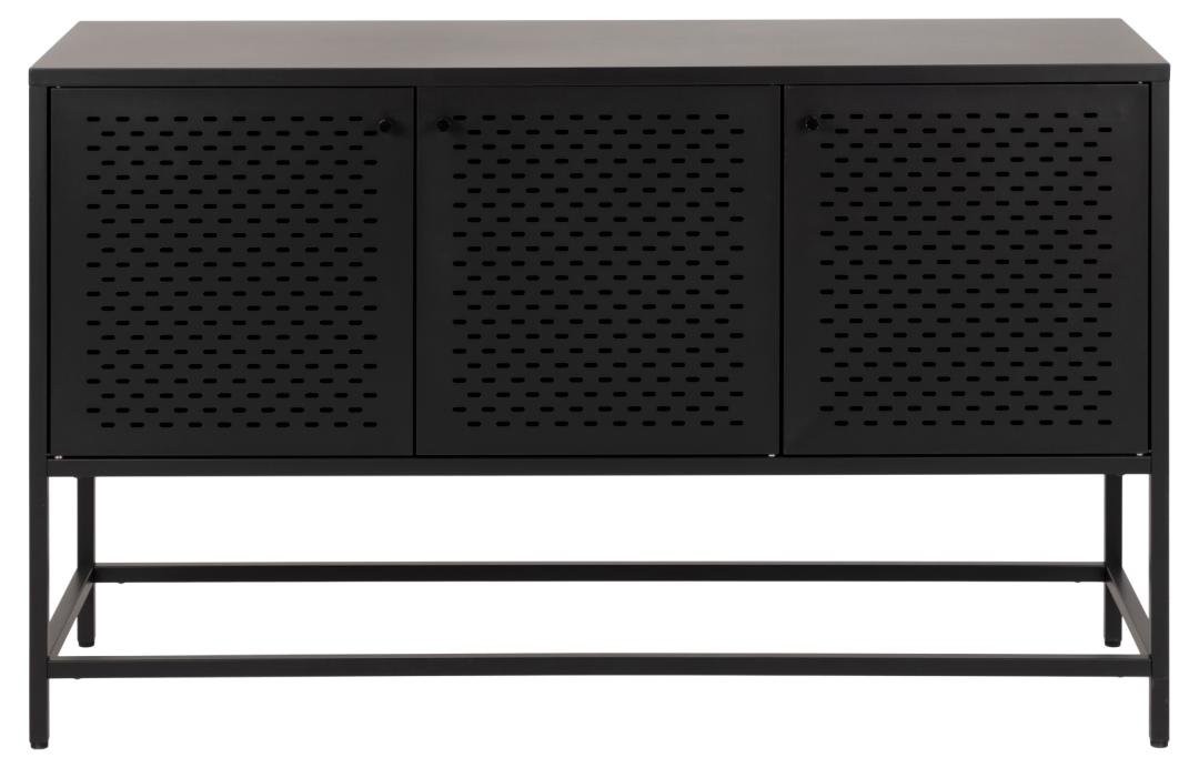 Naša komoda Rutes bo dodala industrijski pridih vašemu domu z oblikovanjem celotno v metalu. Prašno lakirana kovina namesto moderni občutek, medtem ko perforirana vrata ustvarjajo končen industrijski videz. Ta komoda ni le estetsko dovršena, temveč ponuja tudi obilo shranjevalnega prostora. Priročna in prilagodljiva, komoda Rutes je popolna izbira za tiste, ki želijo estetiko združiti z funkcionalnostjo.