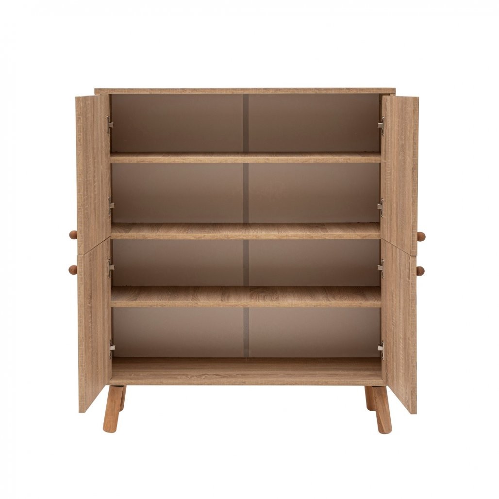 Ta omarica je izdelana iz 100-odstotno melaminirane iverne plošče, zato se ponaša z izjemno trpežnostjo in dolgo življenjsko dobo. Debelina 18 mm zagotavlja, da je odporna na vsakodnevno obrabo, zato je kot nalašč za zaposlena gospodinjstva. Lesene noge dodajo pridih prefinjenosti, UV premaz pa omarico sčasoma zaščiti pred bledenjem in razbarvanjem.