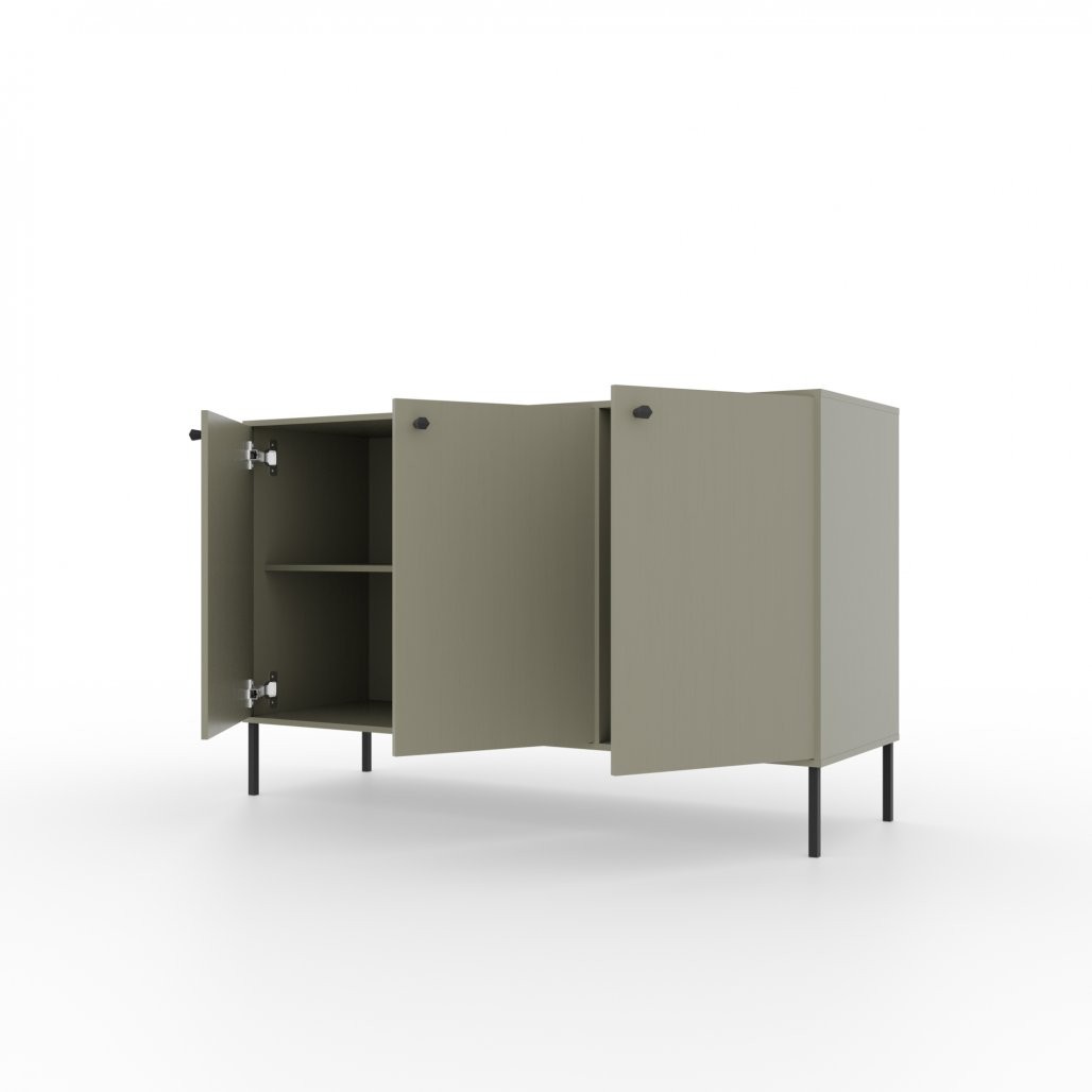 Komoda Tili s 3 vrati je sodoben in eleganten kos pohištva, ki se popolnoma prilega tako spalnici kot dnevni sobi. S svojo premišljeno barvno paleto in minimalističnim dizajnom združuje funkcionalnost in estetiko v popolni harmoniji.