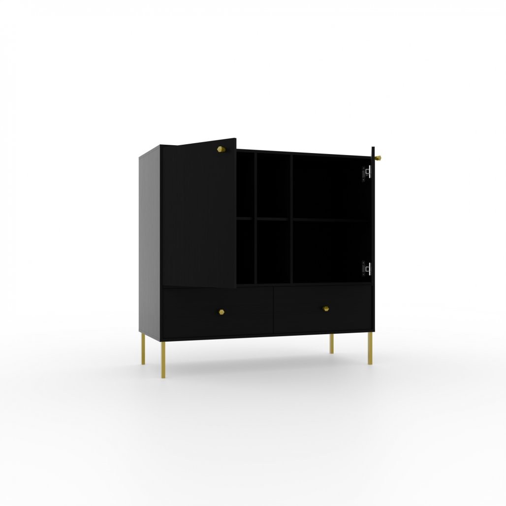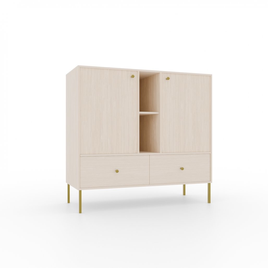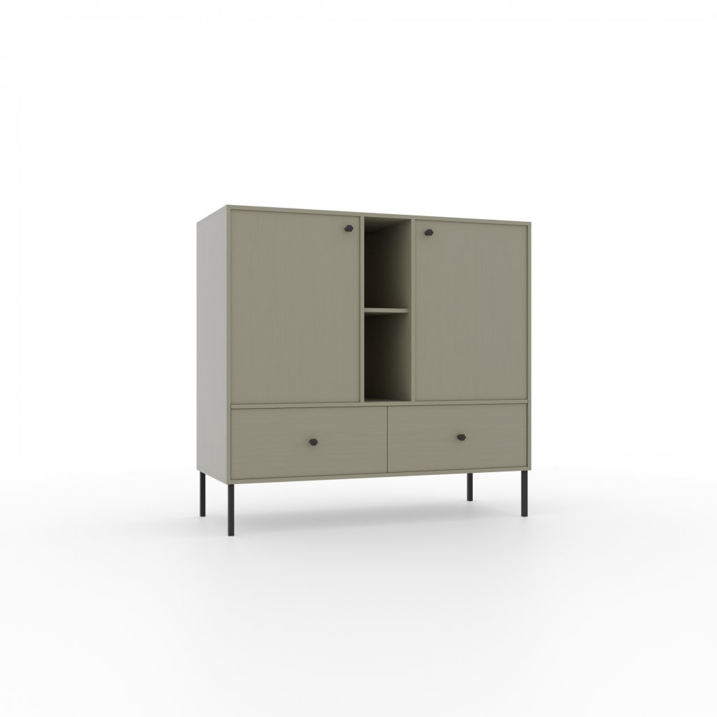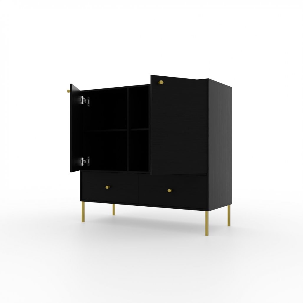 Komoda Tili z 2 vrati in 2 predaloma je sodobno zasnovan kos pohištva, ki združuje funkcionalnost in estetsko dovršenost. Zaradi premišljene izbire barv in elegantnega dizajna je idealna za spalnice in dnevne sobe različnih slogov.