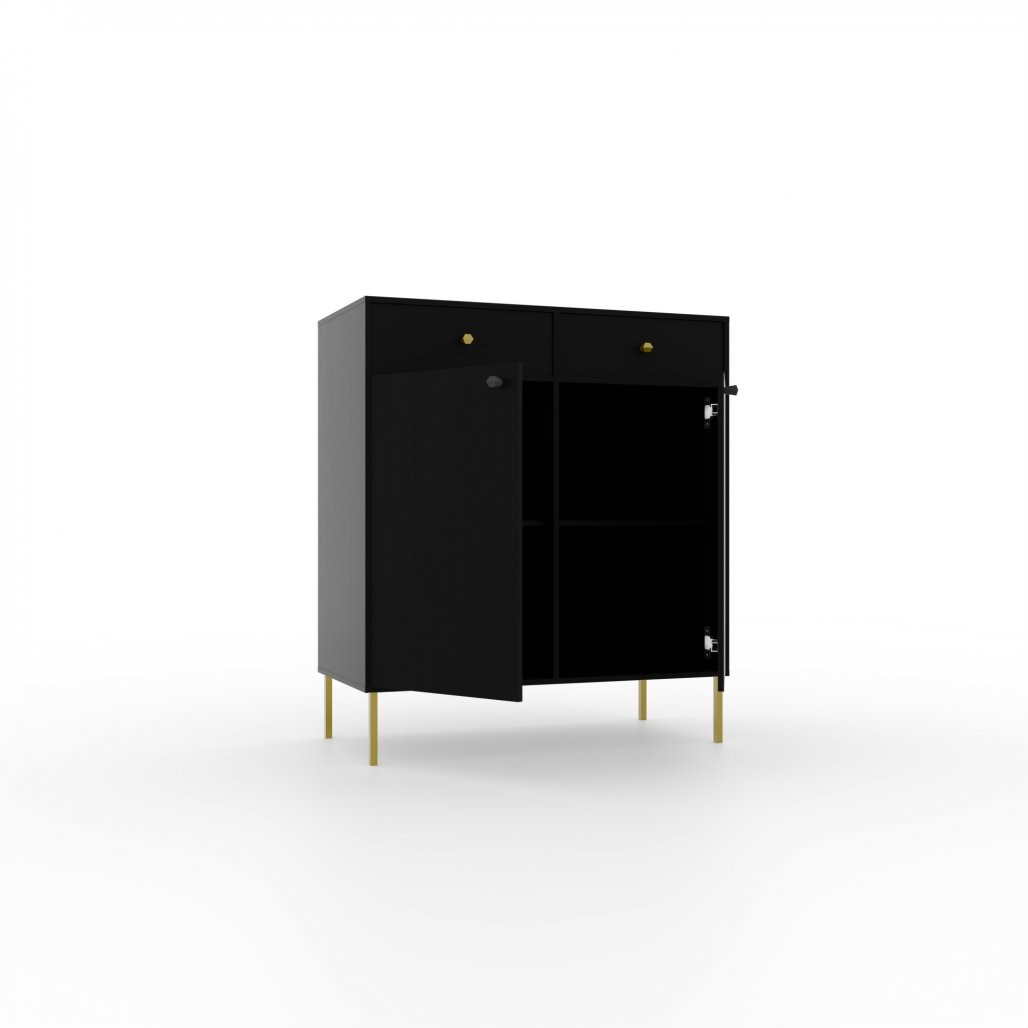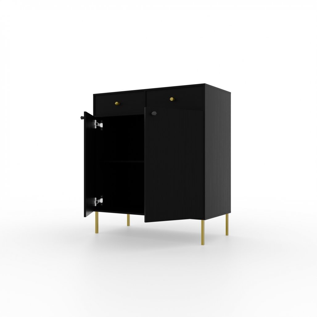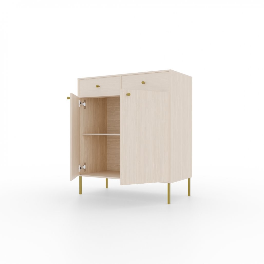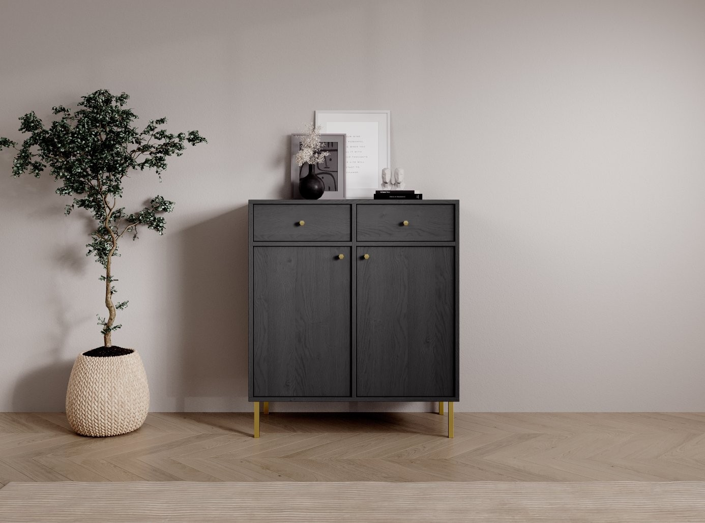 Komoda Tili z 2 vrati in 2 predaloma je sodobna in elegantna rešitev za shranjevanje, ki se popolnoma prilega tako spalnicam kot dnevnim sobam. Njena premišljena zasnova in barvna paleta omogočata enostavno vključitev v različne stile notranje opreme.
