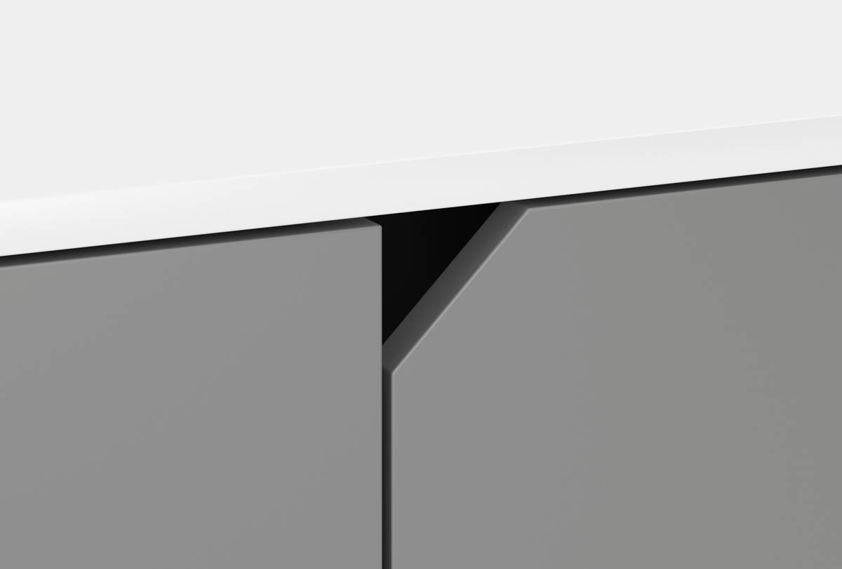 Komoda TOKIO je na voljo v kombinaciji bele in sive barve, ter vnaša estetiko v vaš prostor. Komoda je idealna za shranjevanje vsega, od oblačil do pripomočkov, in je kot nalašč za spalnice, ki potrebujejo malo dodatne osebnosti.