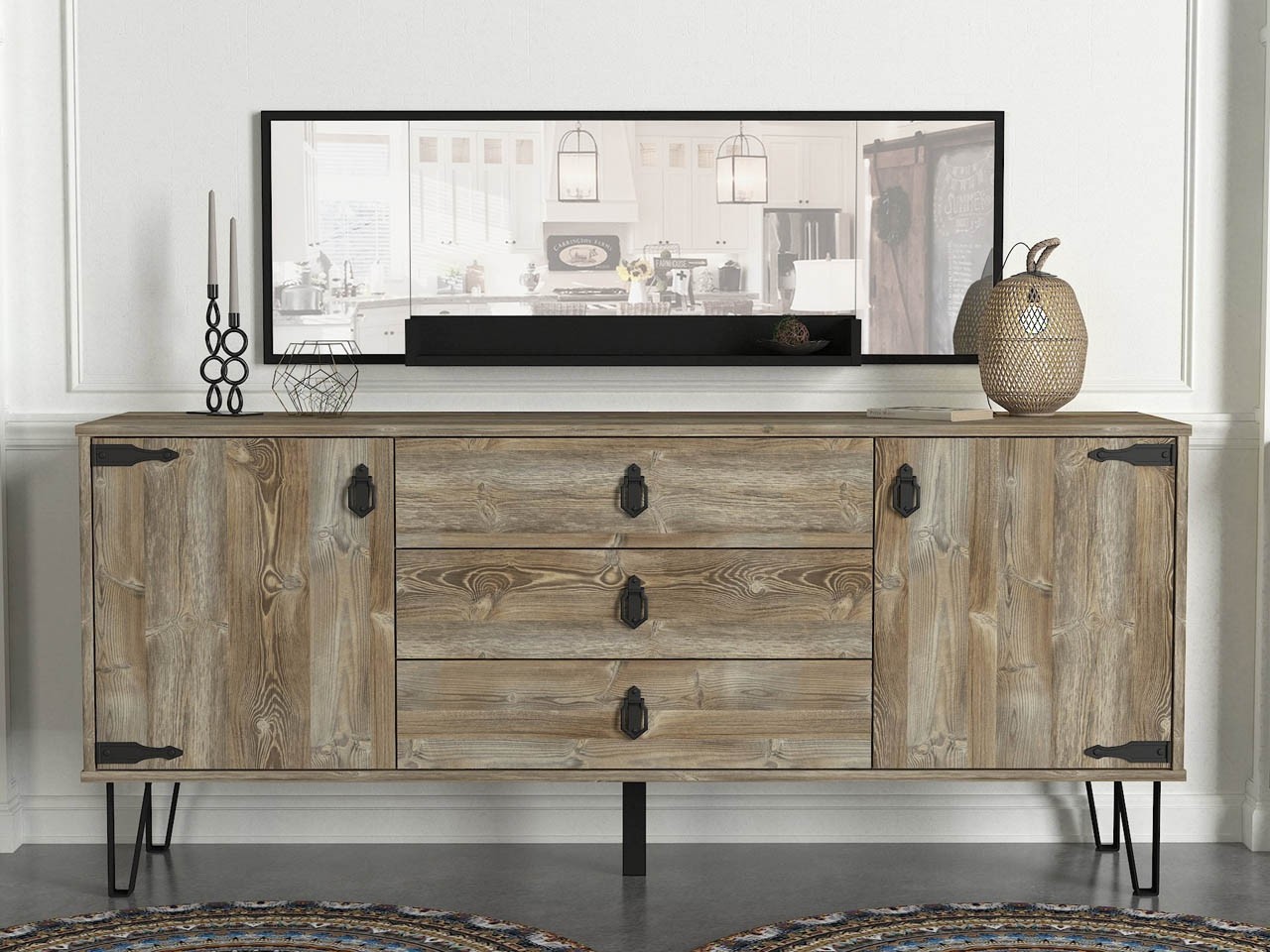 Komoda TROSARD ima tri predale in dvoja vrata, ki zagotavljajo veliko prostora za shranjevanje. Predali so zasnovani tako, da se enostavno odpirajo in zapirajo, kar omogoča hitro in učinkovito iskanje želenih predmetov. Dvoja vrata pa zagotavljajo dodaten prostor za shranjevanje in poskrbijo za zasebnost predmetov, ki jih ne želite izpostavljati. Zraven komode dobite tudi ogledalo.