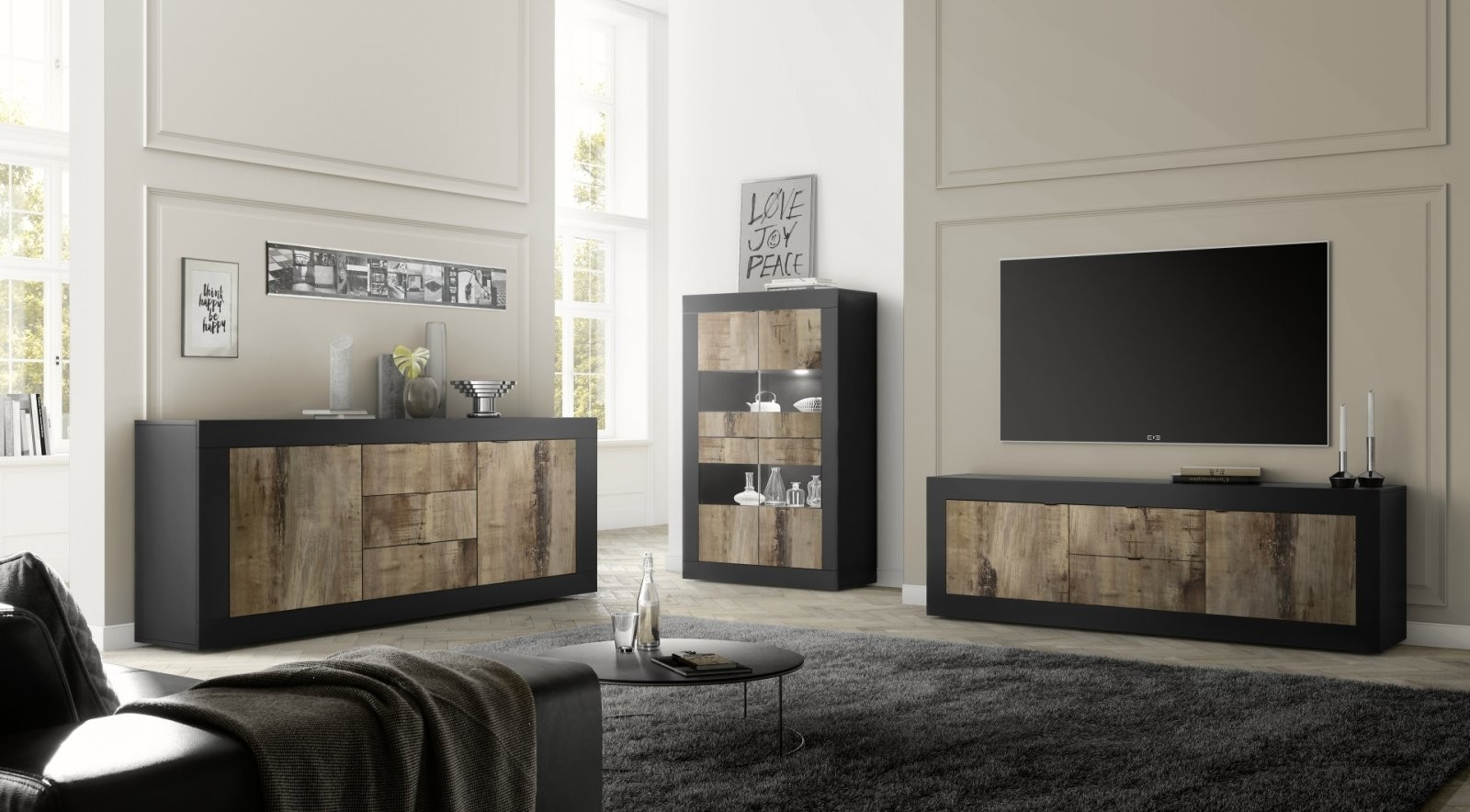 Komoda z 2 vrati in 3 predali BASIC 208015-07P je popolna izbira za sodobno dnevno sobo. S svojo minimalistično zasnovo in elegantno kombinacijo mat črne ter PERO hrast barve bo popestrila vsak prostor. Ponuja veliko prostora za shranjevanje in je izdelana iz kakovostne oplemenitene iverne plošče, kar zagotavlja dolgo življenjsko dobo in enostavno vzdrževanje.