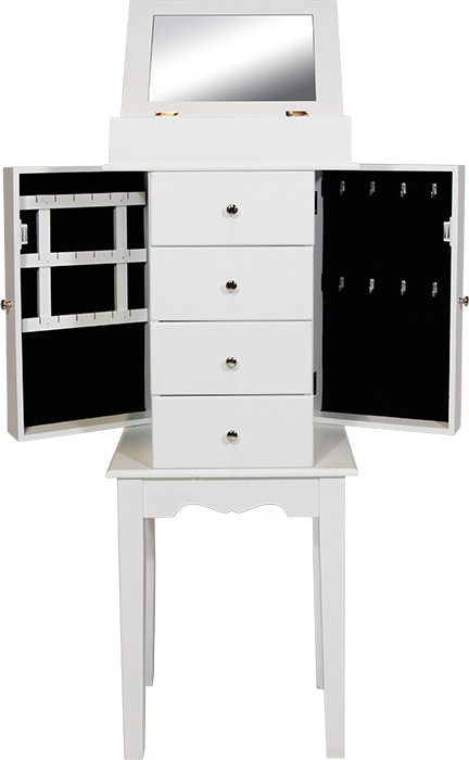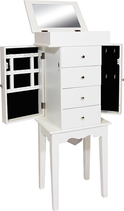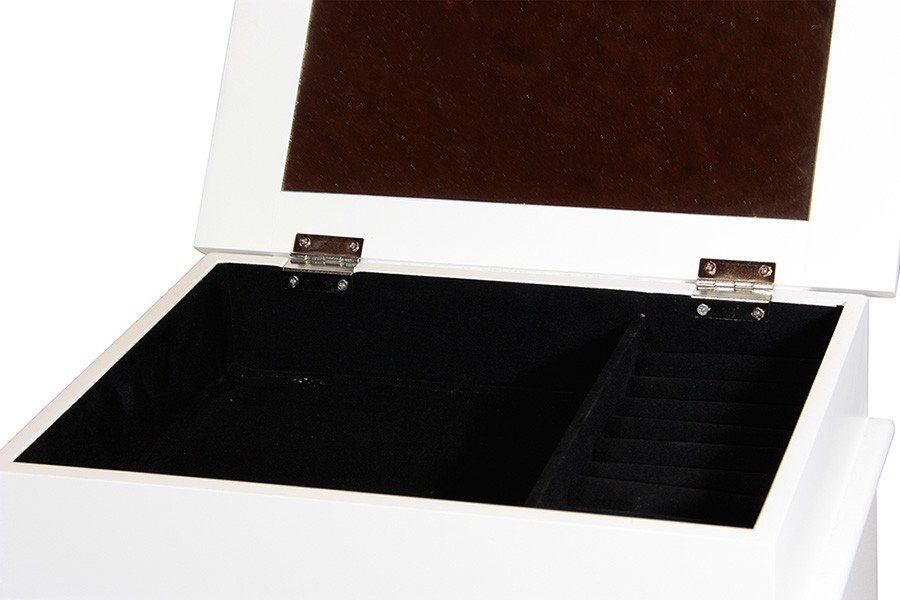 Komoda za nakit LORA v beli barvi je idealno mesto za shranjevanje vašega nakita ter ličil in je obvezen dodatek v vaši spalnici. S komodo bo vaš nakit vedno na svojem mestu. S časom se nabere veliko dragih in malo manj dragih drobnarij, oziroma vašega nakita. Uhani, verižice, ure, zapestnice in še bi lahko naštevali. S to komodo vam bo nakit vedno pri roki in kar je najpomembnejše, vedno bo urejen.