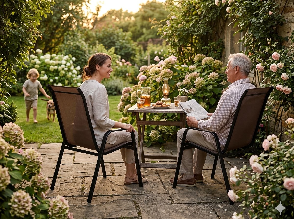 Komplet 2 vrtnih stolov Rjavko je komplet dveh vrtnih stolov za balkon, teraso ali vrt. Rjava barva deluje nevtralno oziroma naravno, zato je komplet primeren za različne zunanje postavitve.