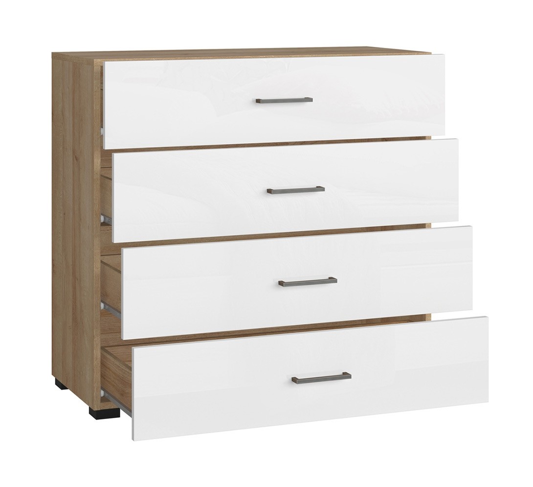 Spalnica Luna je izdelana iz visoko kvalitetnega in trpežnega materiala, ki je nezahteven za vzdrževanje in visoko odporen na abrazijo. Za izdelavo je uporabljen z melaminsko folijo oplemenitena iverna plošča, ki je močna in stabilna. Hkrati pa vam nudi zaščito pred mehanskimi poškodbami in vlago. Samo zdaj si lahko privoščite vrhunsko in kvalitetno spalnico po posebni ceni.