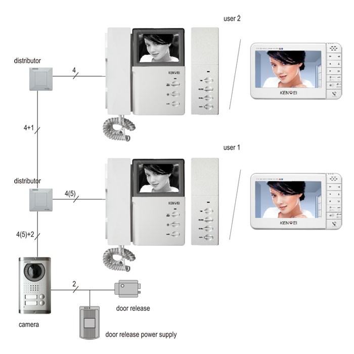 - zmožen operirati z dvema zunanjima postajama in kamero ali dvema kamerama in eno zunanjo postajo