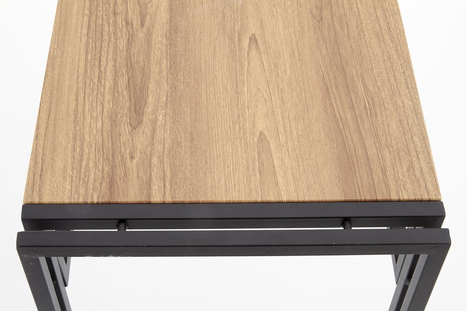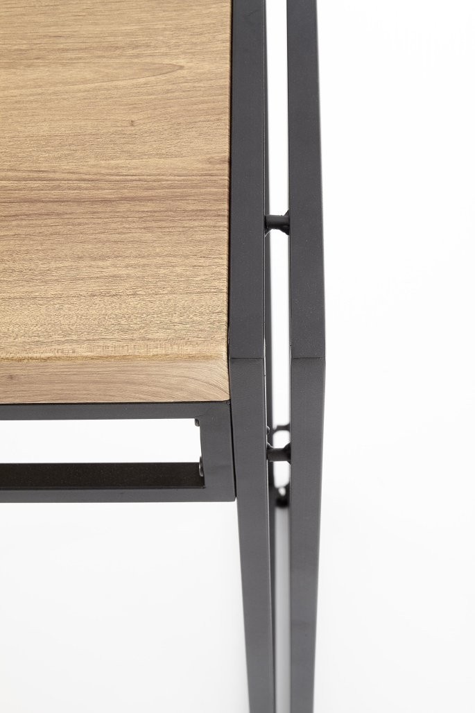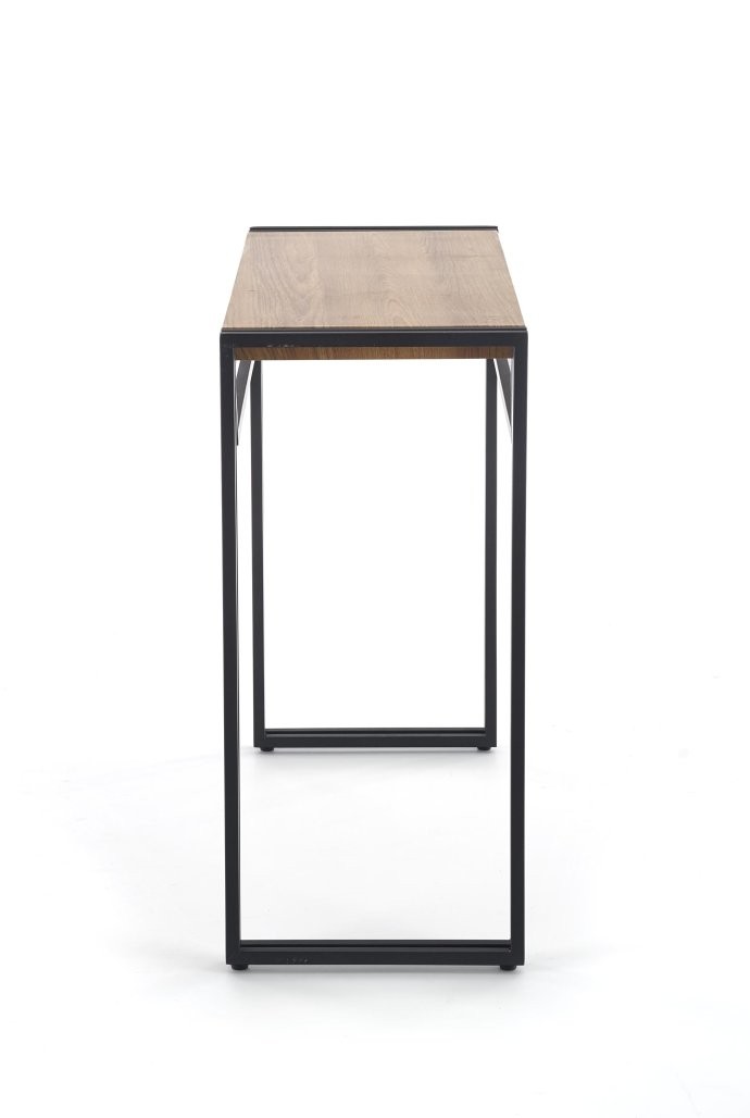 Konzolna miza Jorel v slogu z zlato hrastovo površino in črnim kovinskim okvirjem dodaja industrijski pridih. Kompaktna in funkcionalna izbira za različne prostore.