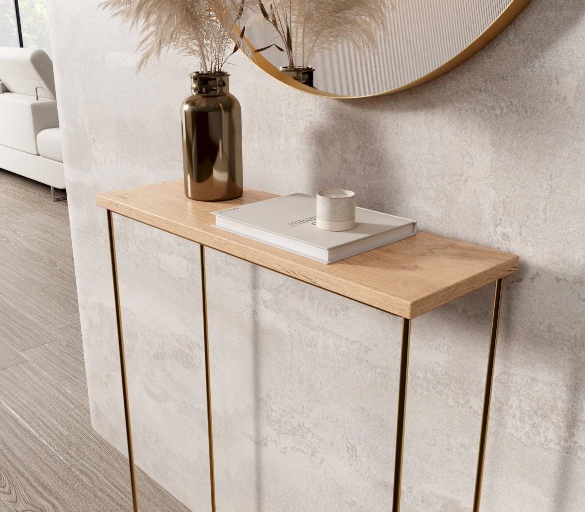 Konzolna miza Sili z žičnim podnožjem je elegantna in funkcionalna rešitev za različne prostore vašega doma. Njena univerzalna zasnova omogoča uporabo v sodobnih in klasičnih interierjih – kot praktična odlagalna površina na hodniku, dekorativen element v dnevni sobi ali kot minimalistična delovna površina.