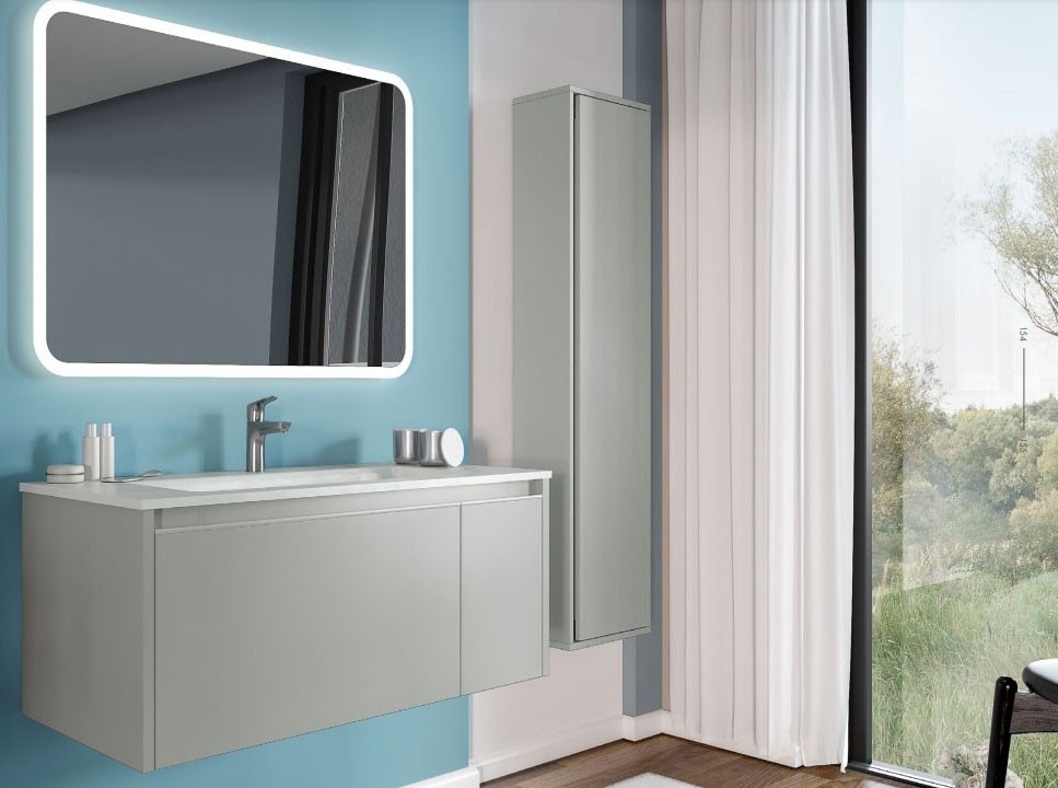 Privlačen in sodoben kopalniški blok CIELO je želja vsakogar. Kopalniški blok vam bo omogočil veliko shranjevalnega prostora za kozmetiko in ostalo nujno opremo, ki sodi v kopalnico. Kopalniški blok vsebuje omarico z umivalnikom, ogledalo in visečo omaro. Na voljo je v temno sivi barvi. LED osvetlitev je vključena v ceno.