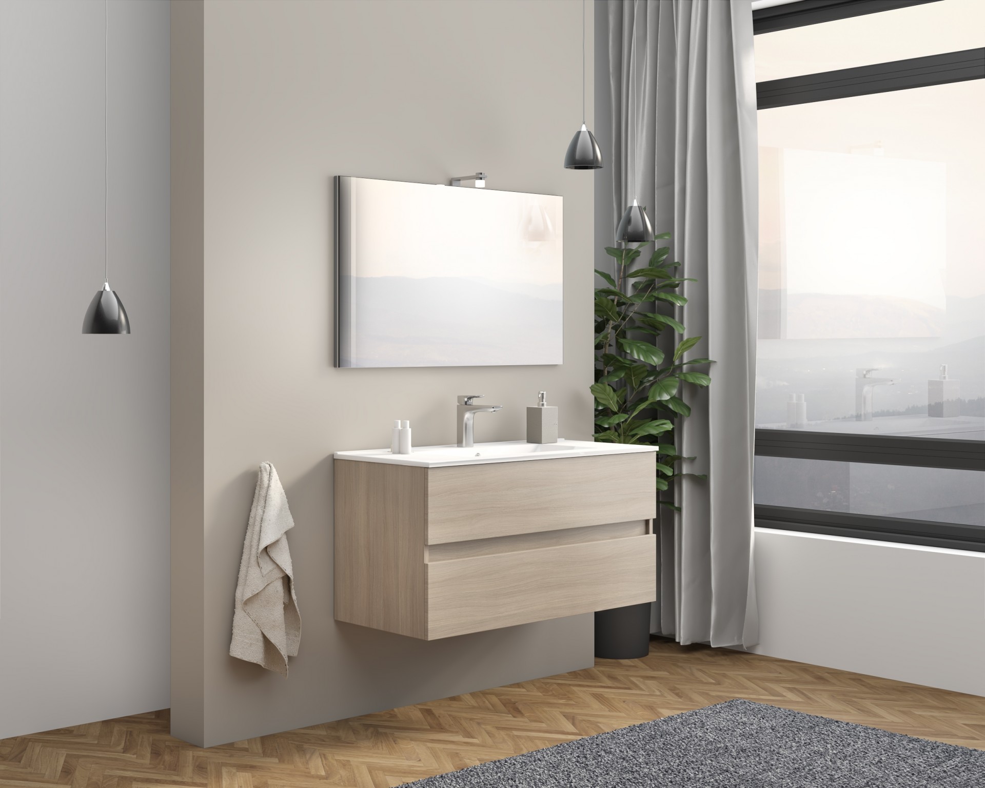 Kopalniški blok Easy vključuje omarico z dvema predaloma, keramični umivalnik, priročno ogledalo in LED lučko, ki poskrbi za dobro osvetlitev vaše kopalnice. Omarica vam nudi dovolj prostora za shranjevanje brisač, čistil in raznih higienskih pripomočkov, v kolikor potrebujete več prostora pa lahko donaročite tudi dodatno visečo omarico istega dizajna. Omarica ima ABS robove in funkcijo mehkega zapiranja, ki preprečuje trenje in nastajanje poškodb, zato vam bo omarica dobro služila vrsto let. Kopalniški blok se zaradi elegantnega videza in preproste barvne sheme odločno poda v vsako kopalnico!