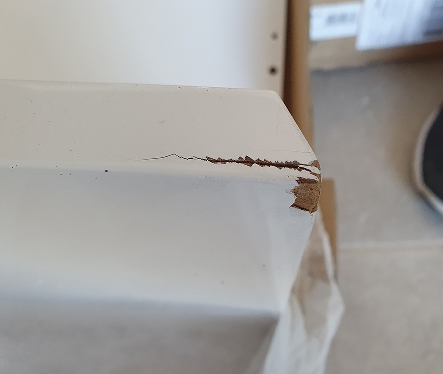 Kopalnica je nova, nemontirana. Ima pa na več elementih poškodbe, ki so nastale med transportom. Embalaža izdalka je v slabšem stanju.