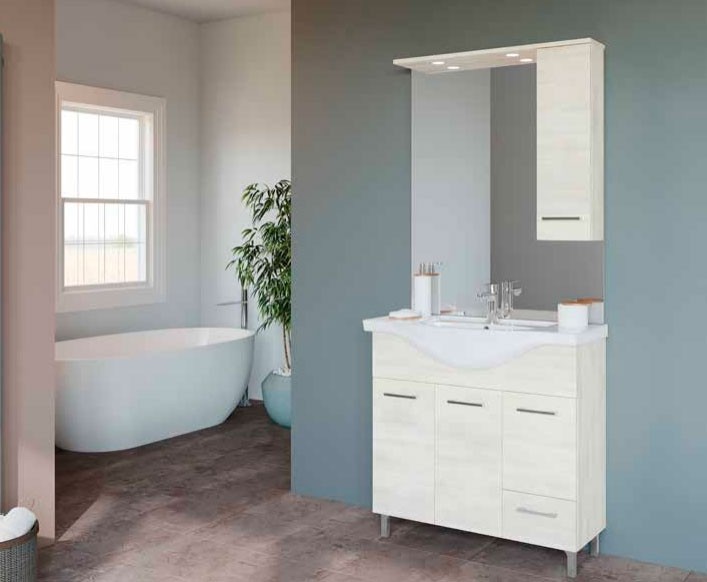 Kopalniški blok VENERE je preprost vendar modernega izgleda in se lahko poda v vsako kopalnico. Kopalniški blok vsebuje tri vratca, predal, keramičen umivalnik in ogledalo z LED osvetlitvijo, ki vam bo omogočalo urejen videz. Na voljo je v barvi belega hrasta.
