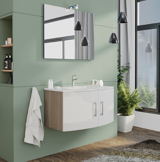 Kopalniški blok VIRGINIA vključuje prostorno omarico z vratci, keramični umivalnik, praktično ogledalo, ter LED lučko nad ogledalom, ki ne le dobro osvetli kopalnico toda omogoči tudi modernejši videz.