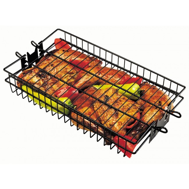 Košara za raženj je narejena iz materiala, ki preprečuje prijemanje hrane. Je vrteča košara, ki se zelo enostavno namesti na palico od ražnja.