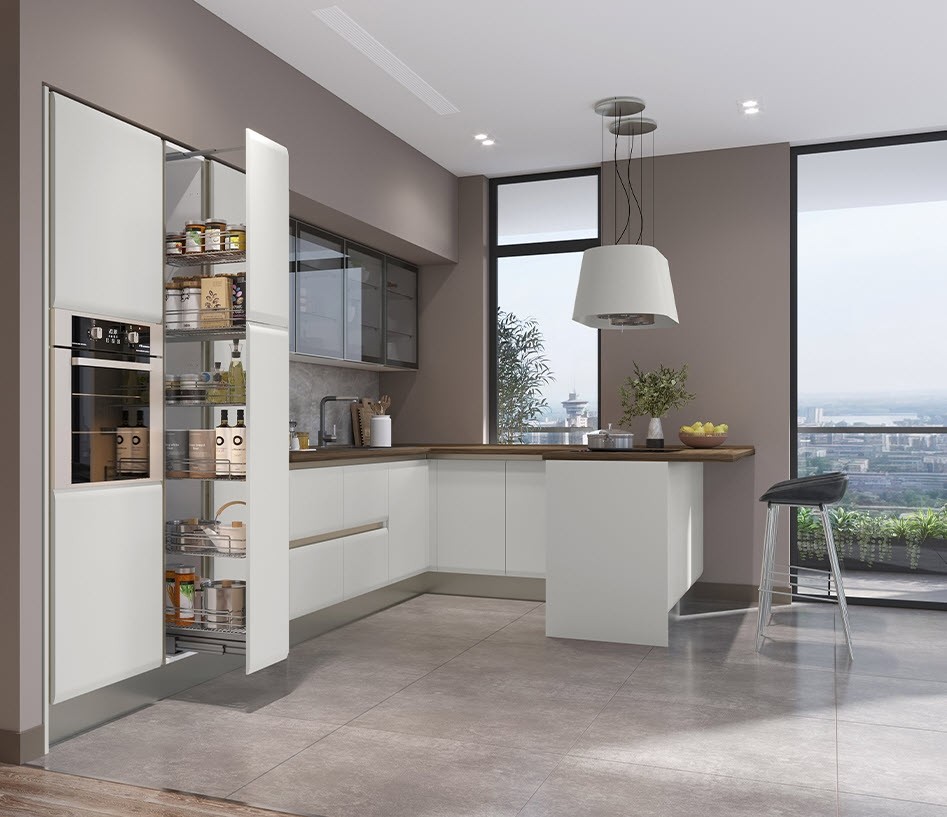 Privoščite si moderno in kvalitetno kotno kuhinjo Invictus, ki kar žari v svojem minimalističnem dizajnu in topli kašmir barvi. Nudi vam veliko prostora za shranjevanje, brezročajna vratca in predale, ter mehanizem mehkega zapiranja, ki pripomore k lažji vsakodnevni uporabi ter dolgi življenjski dobi kuhinje. Kuhinjo Invictus lahko naročite tudi po posameznih elementih in si jo popolnoma prilagodite svojemu domu!
