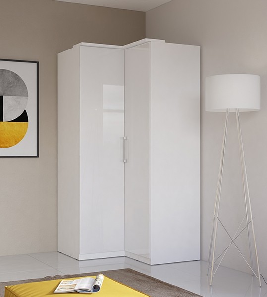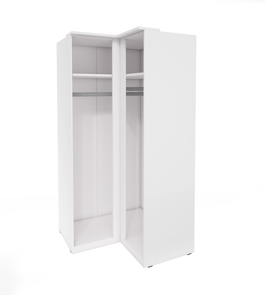 Kotna omara OPTIMA je uporabna in zelo prostorna omara saj nudi dve polici in tri obešalne palice kar pomeni veliko odlagalne površine, ki vam bo omogočila, da bodo vaša oblačila vedno pospravljena. Na voljo je v beli barvi visokega sijaja, ki prostor naredi svetlejši in prijetnejši. Osvetlitev in stranici nista vključeni v ceno. Če jih želite dokupiti nas prosim kontaktirajte.