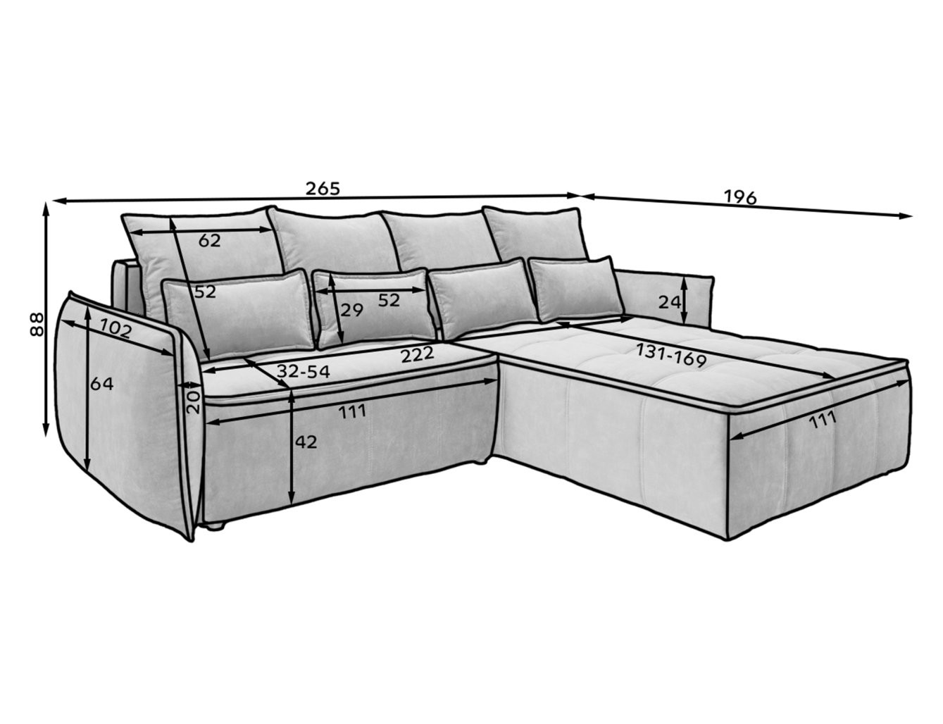 Kotna sedežna garnitura Campo združuje eleganco, udobje in funkcionalnost v enem izjemnem kosu pohištva. S svojimi dimenzijami 265x196x88 cm je popolna izbira za sodoben dom, kjer želite ustvariti prijeten prostor za sprostitev in druženje.