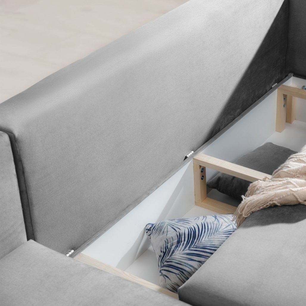 Kotna sedežna garnitura Dalia je popolna izbira za vse, ki iščejo udobje, funkcionalnost in eleganten dizajn v enem kosu pohištva. Zasnovana je za štiri osebe in ponuja izjemno udobje ter praktične rešitve za vsak dom.