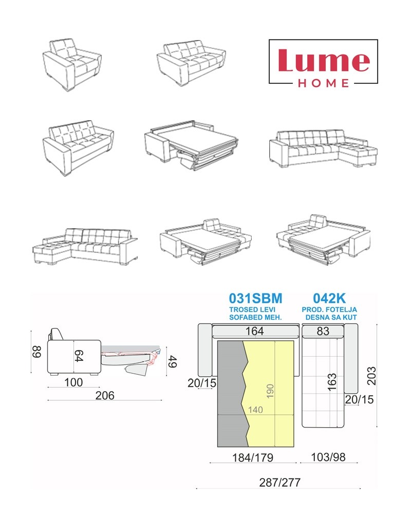 Sedežna garnitura Donover je izdelana v Evropi in ponuja najboljše razmerje med ceno in kakovostjo, kar je zaščitni znak blagovne znamke Lume Home. Zahvaljujoč vrhunskim materialom in premišljeni izdelavi je garnitura zasnovana tako, da zdrži leta uporabe, ne da bi pri tem izgubila na udobju ali vizualni privlačnosti.