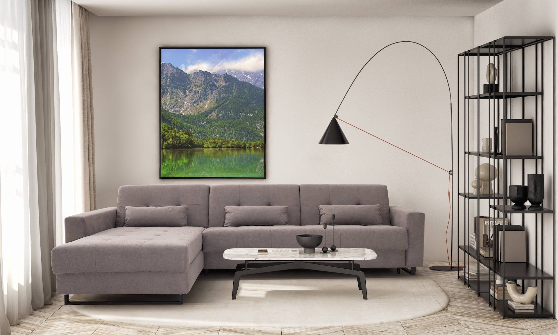 Poleg materialov in barv pa si lahko izberete tudi različno postavitev sedežne. Za kombiniranje so na voljo trosedi, dvosedi in fotelji v levi ali desni različici, ki jih lahko prilagodite svojim željam in potrebam.
